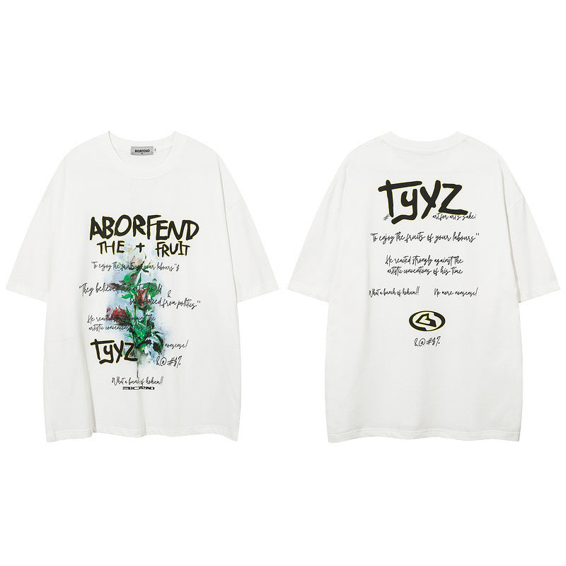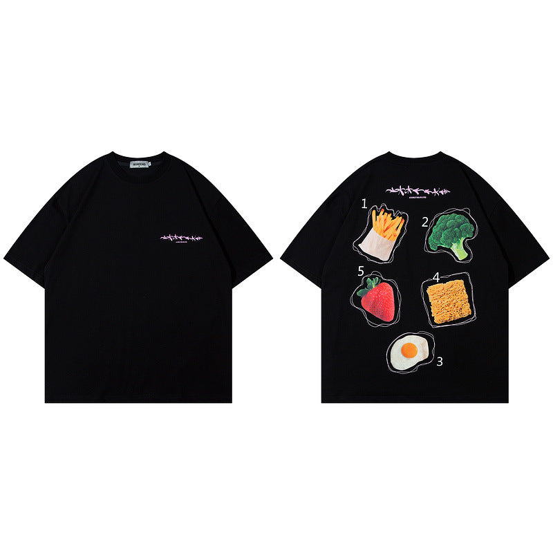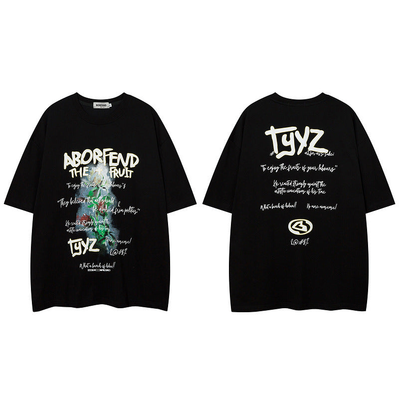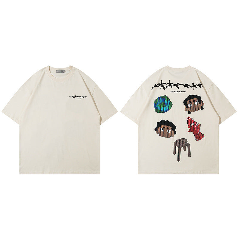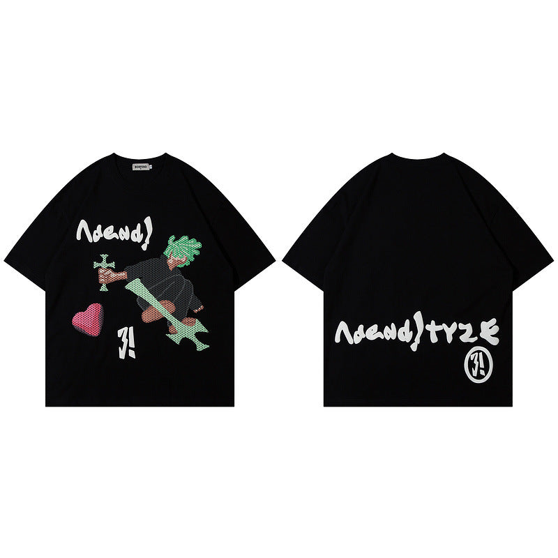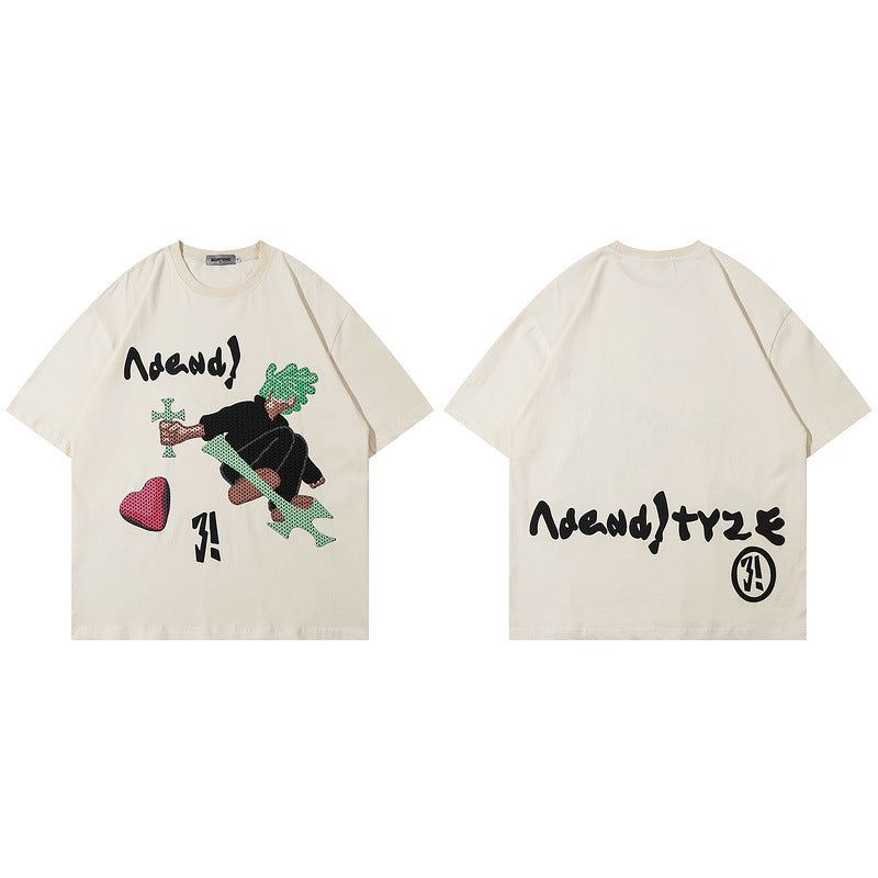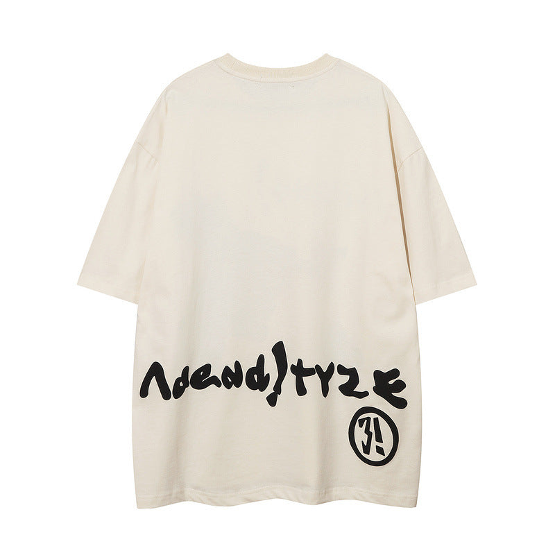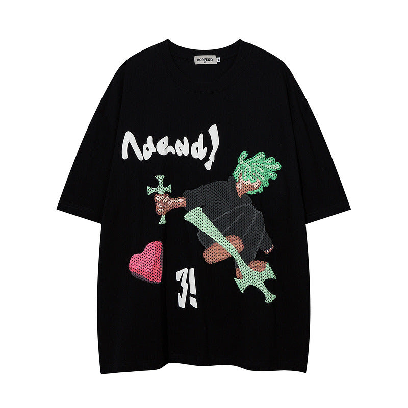 Men T-Shirt Retro Cartoon Puff Print Loose All-Match