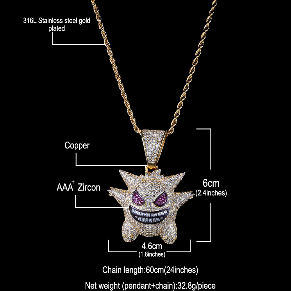 Jewelry INS full zircon purple Geng Gui pendant necklace Animal rapper