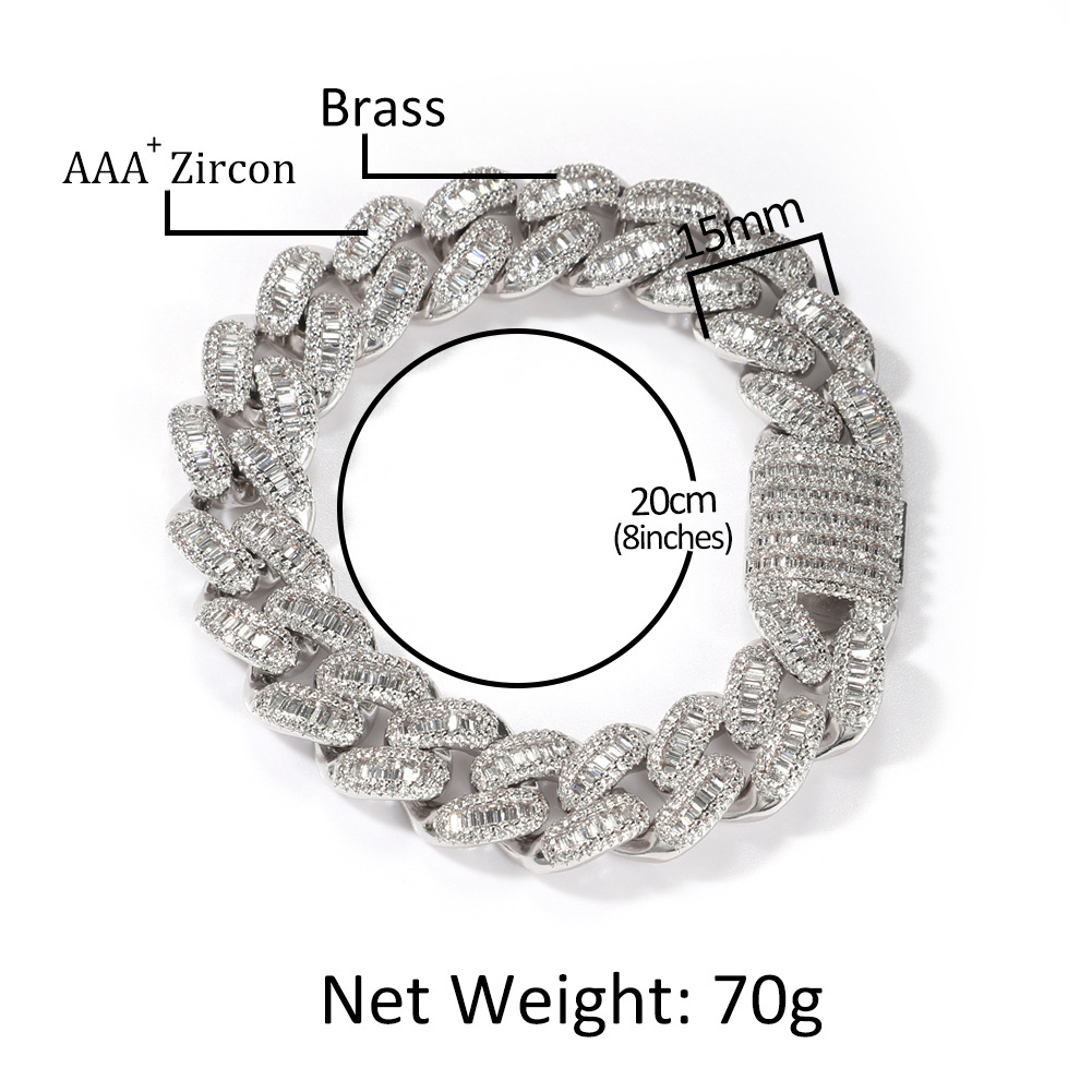 Bracelet 14MMT Square Zircon Hip Hop Cuban Chain Bracelet Spectrum St. Valentine's