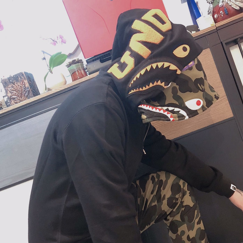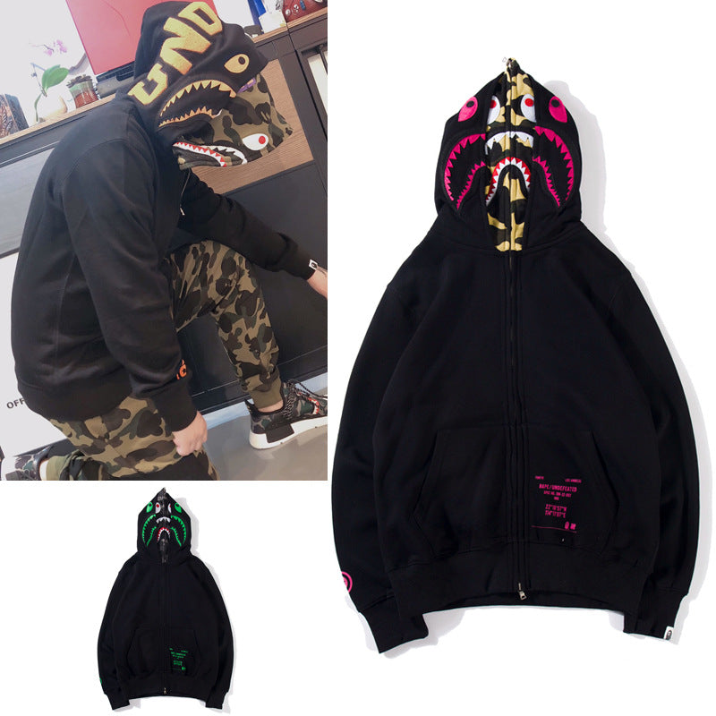 Bathing Ape Hoodie Zip Cardigan Double Hat Shark Sweater Jacket