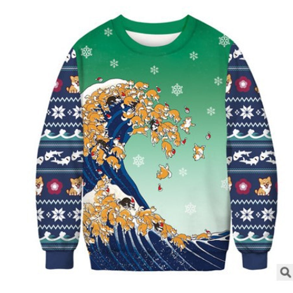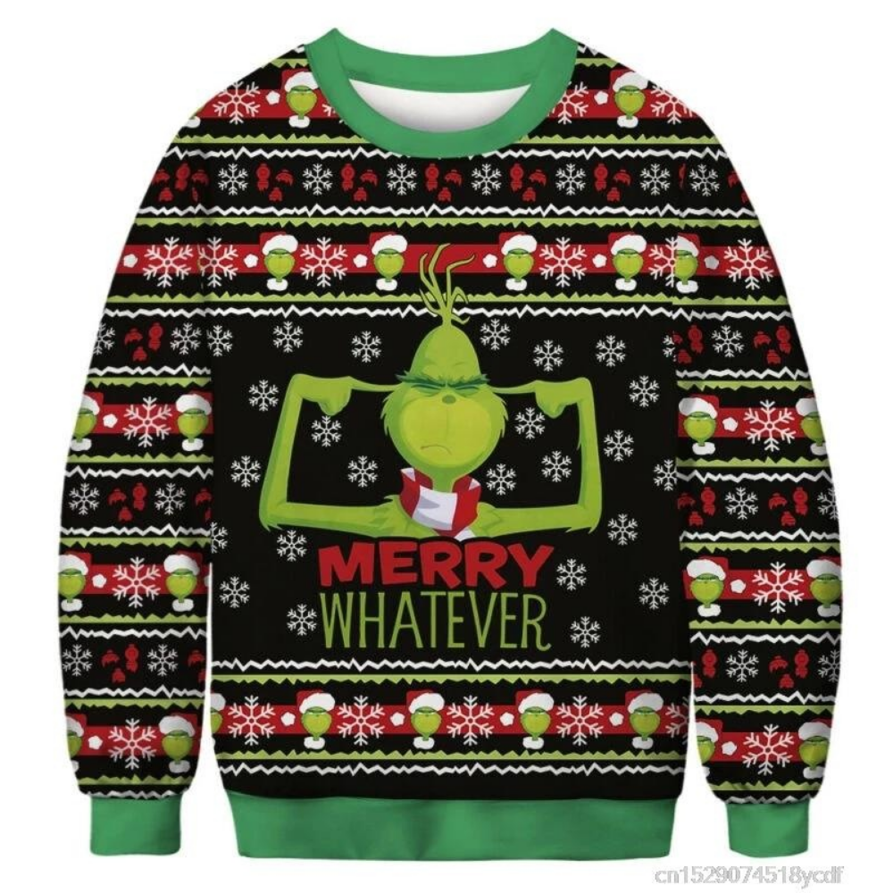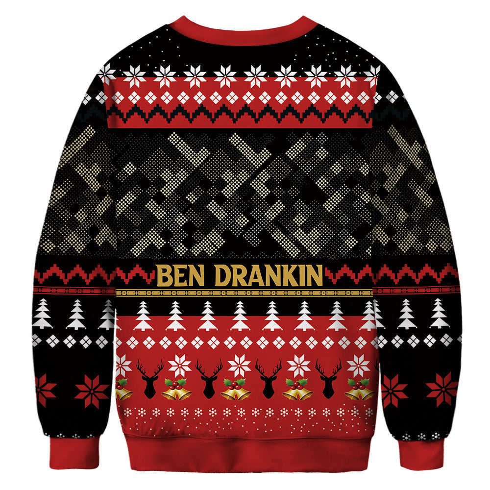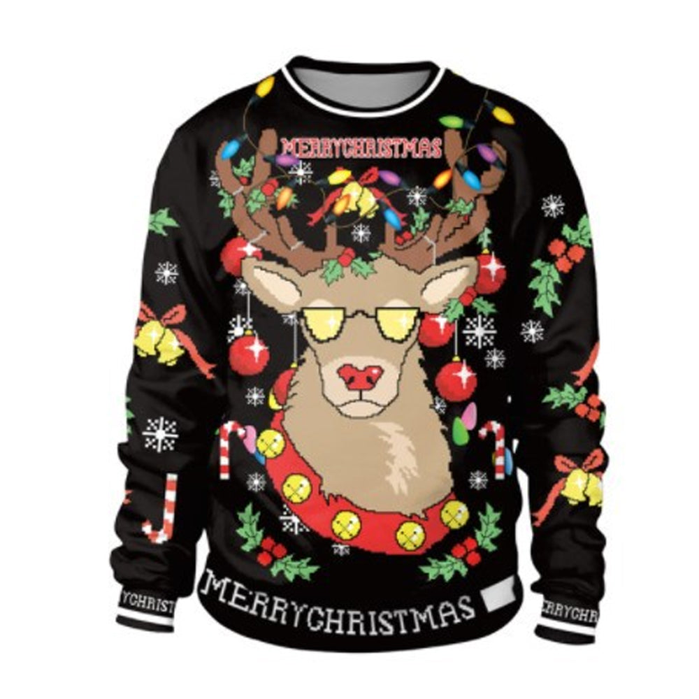 Black Christmas Sweater round Neck Sweater Casual Loose Couple Autumn and Winter