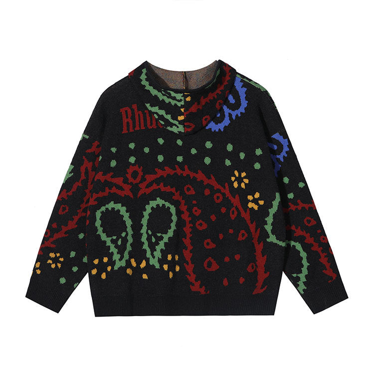 Black Christmas Sweater Vintage Paisley Sweaters Hooded Sweater