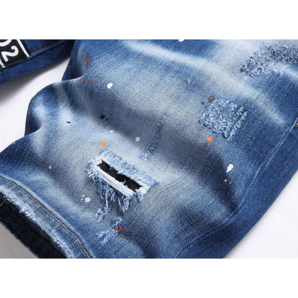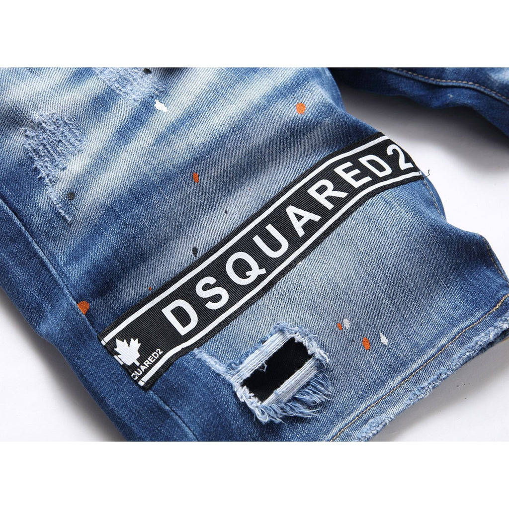 DSQ2 Short Jeans Ripped Patch Slim-fit Stretch Denim Shorts
