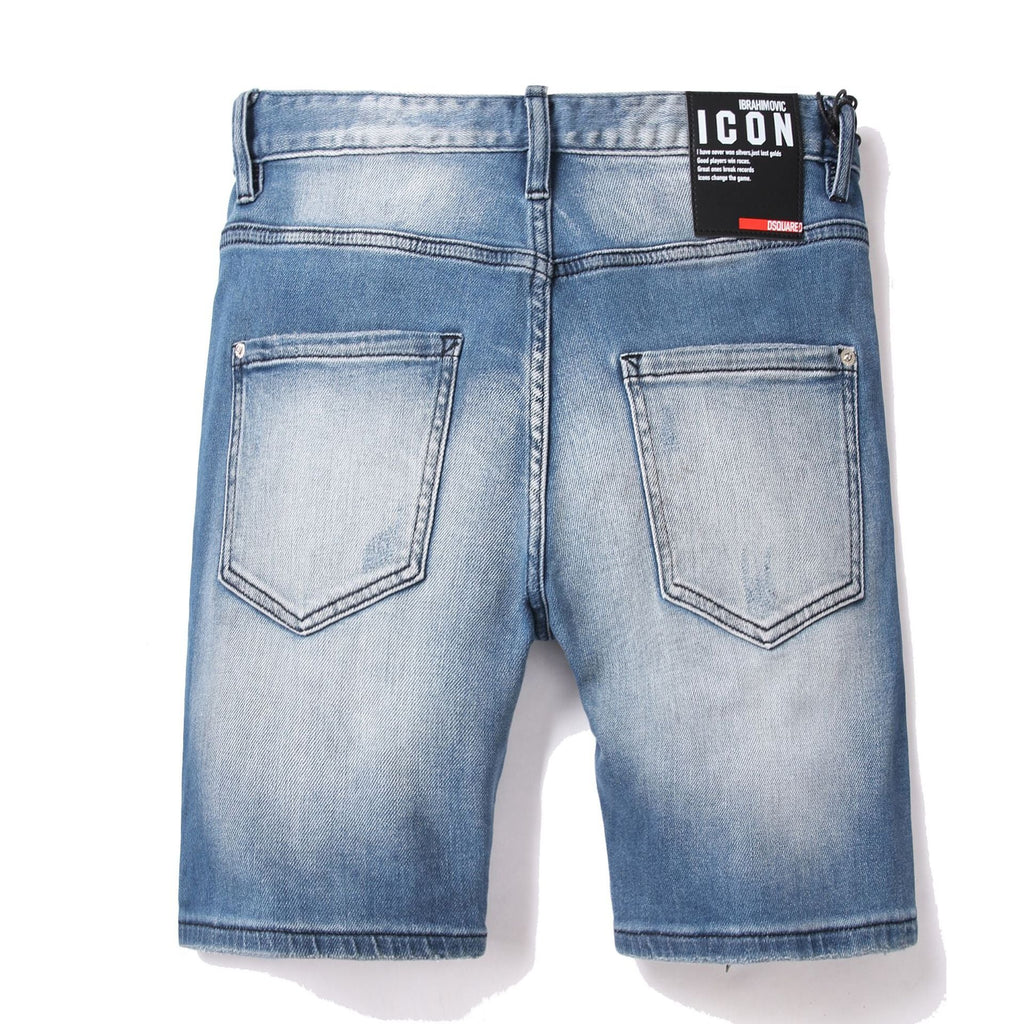 DSQ2 Short Jeans Ripped Patch Slim-fit Stretch Denim Shorts