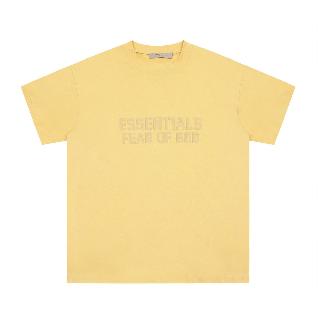 Fog Essentials T Shirts Spring Summer FOG Season 8 Flocking Letter Crew Neck Short Sleeves