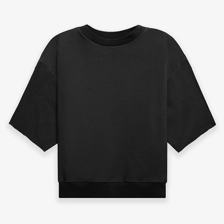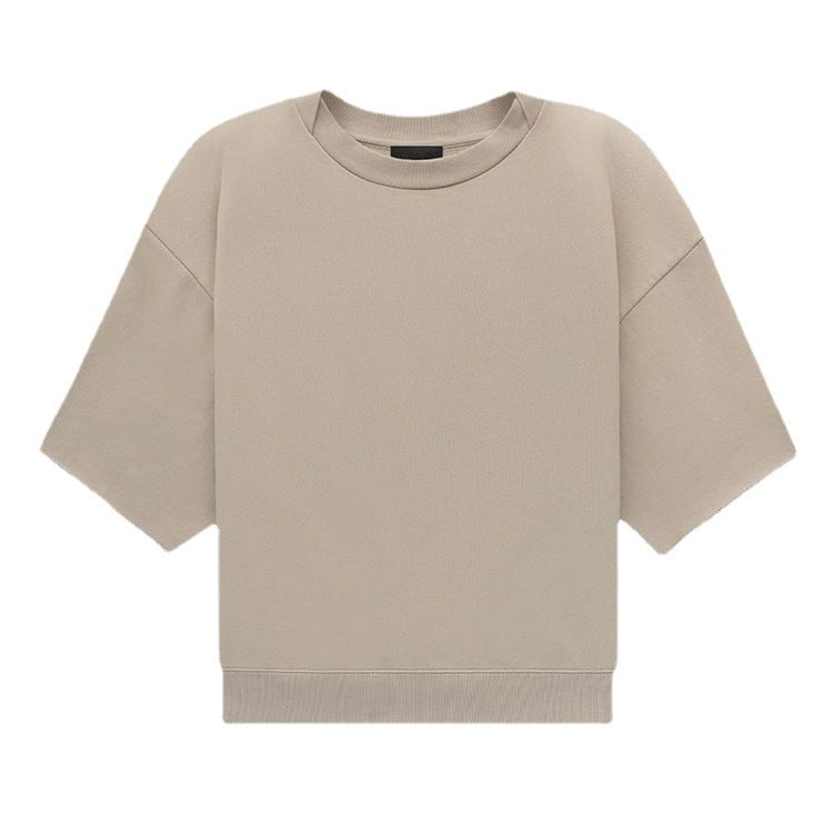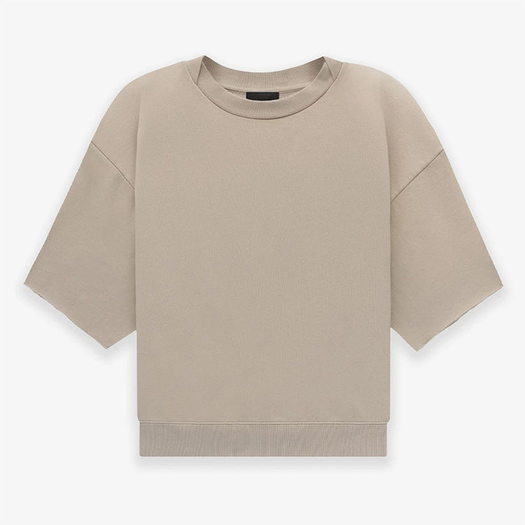 Fog Fear of God Essentials T Shirt Solid Color Fleece Sweater 3/4 Sleeve Loose round Neck Pullover Short Sleeve Men
