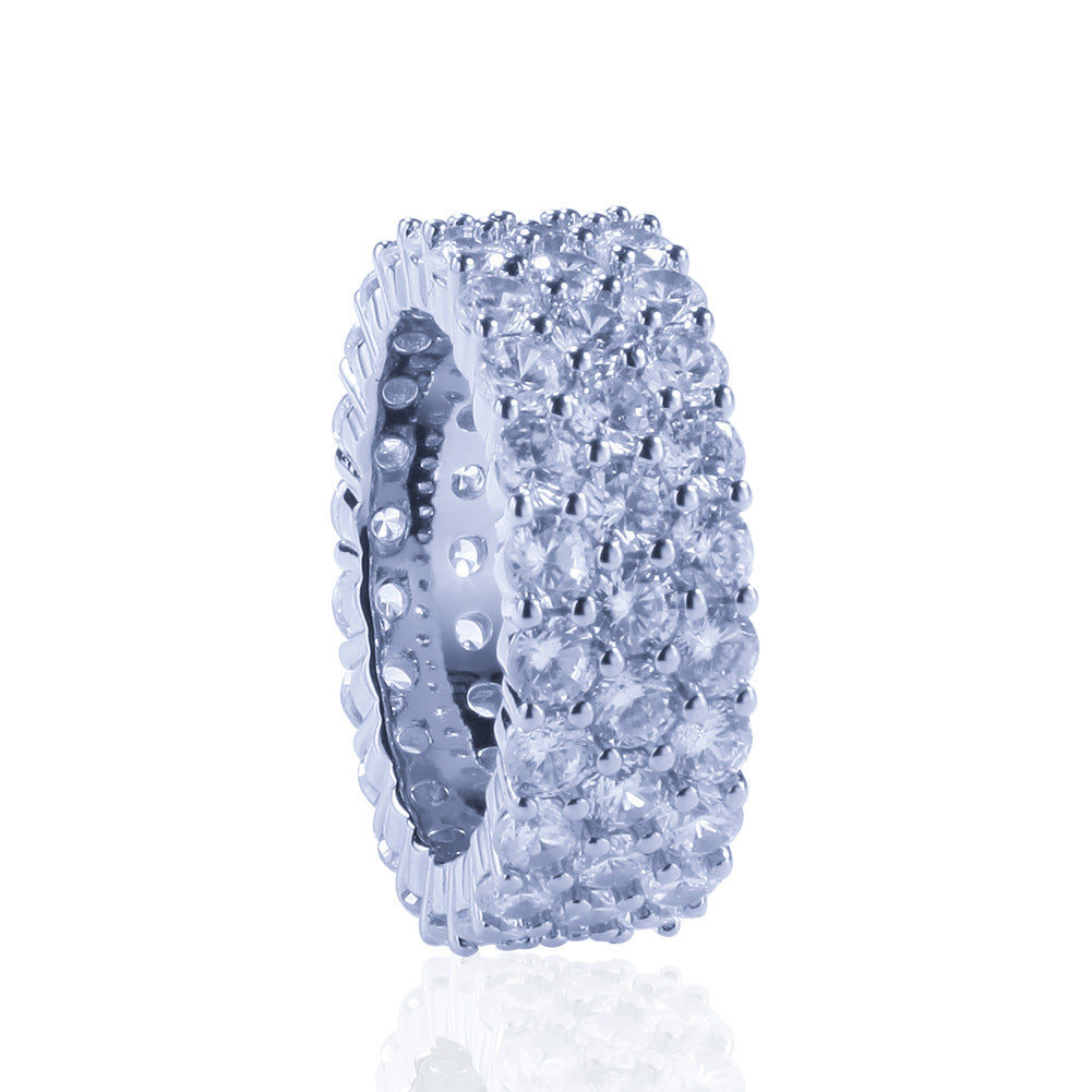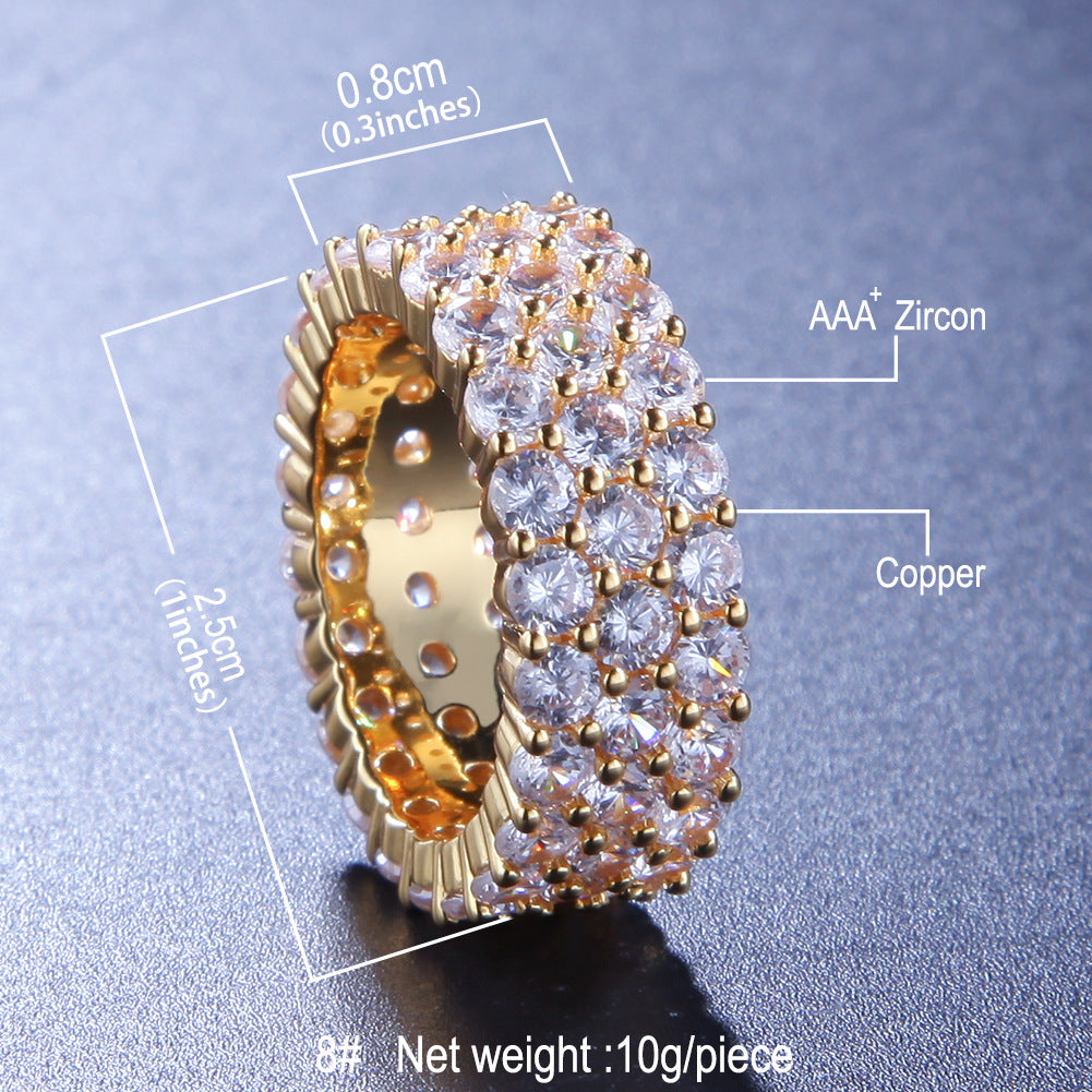 Rings Hip Hop Diamond Set 3-Row Zircon Ring BlingBling Spectrum St. Valentine's