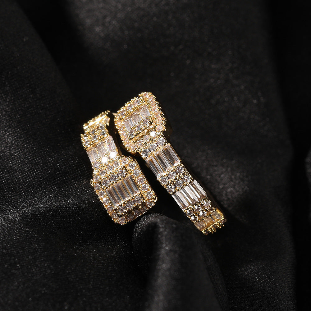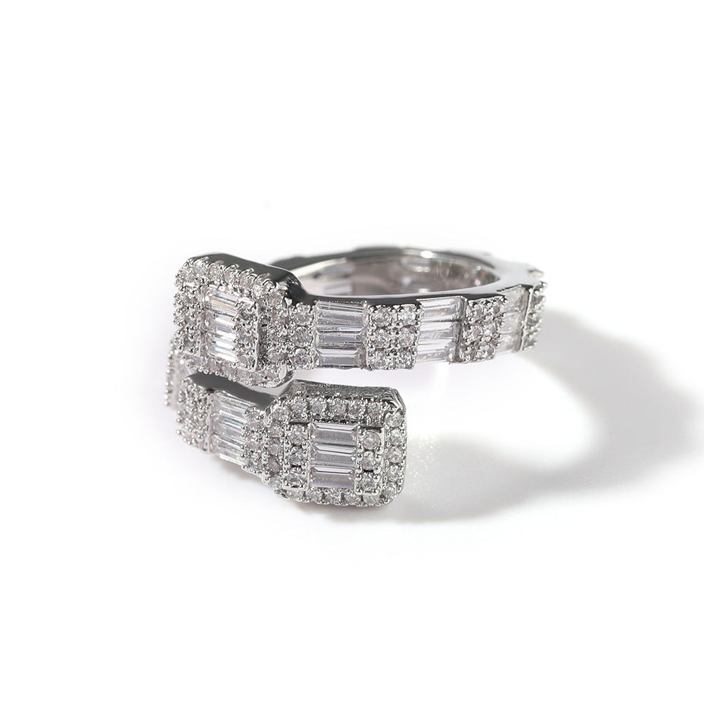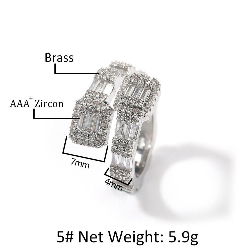Rings 18K Gold Copper Plated T Square Zircon Ring Spectrum