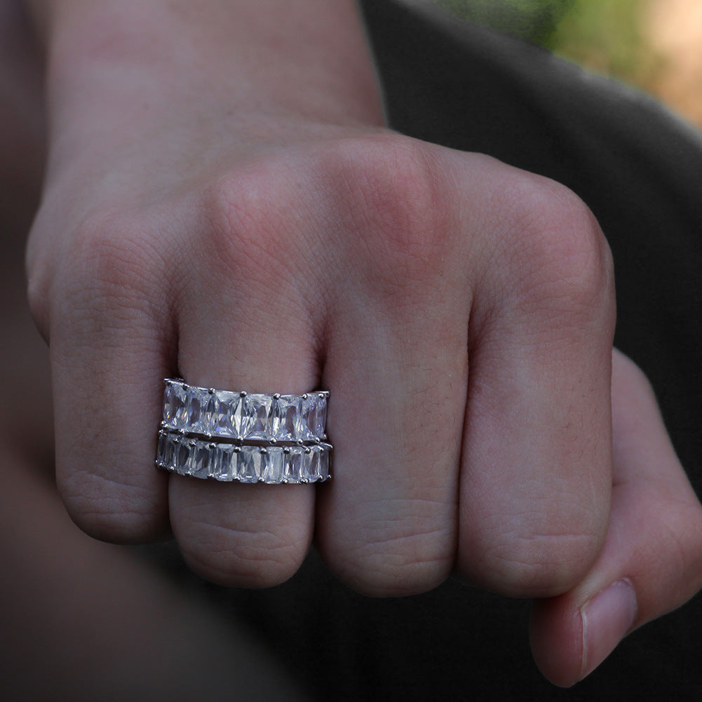 Rings Rap Men's Square Zircon Ring Hiphop St. Valentine's