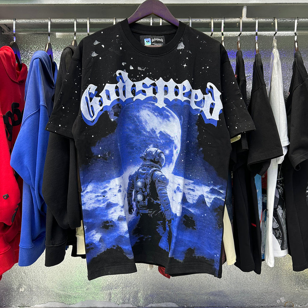 Godspeed T Shirts Space Astronaut Earth Print Cotton Short Sleeve Men and Women