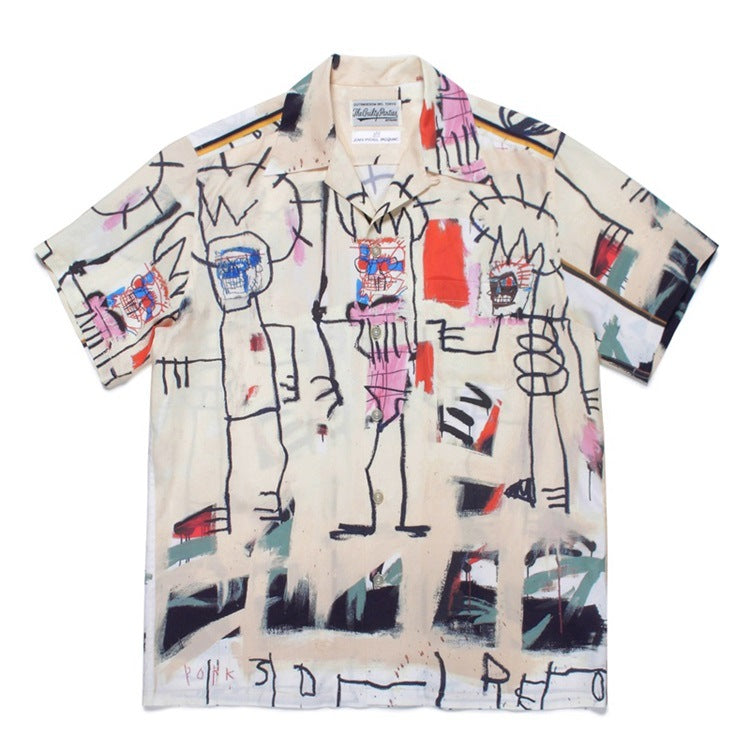 GUILTYPARTIES TIGER Shirts Joint Japanese Basquiat Graffiti Short Sleeve Flower Shirt