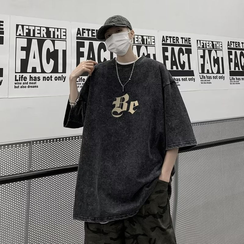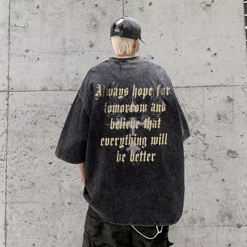 Men T Shirt Distressed Pure Cotton Heavy Retro