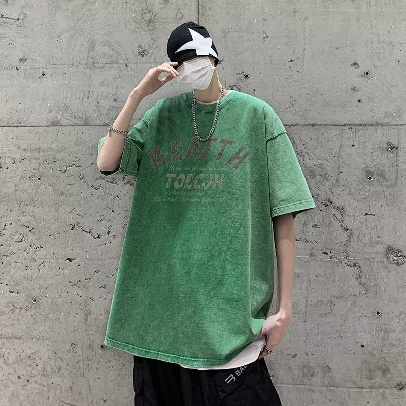 Men T Shirt Cotton Heavy Summer Distressed Oversize