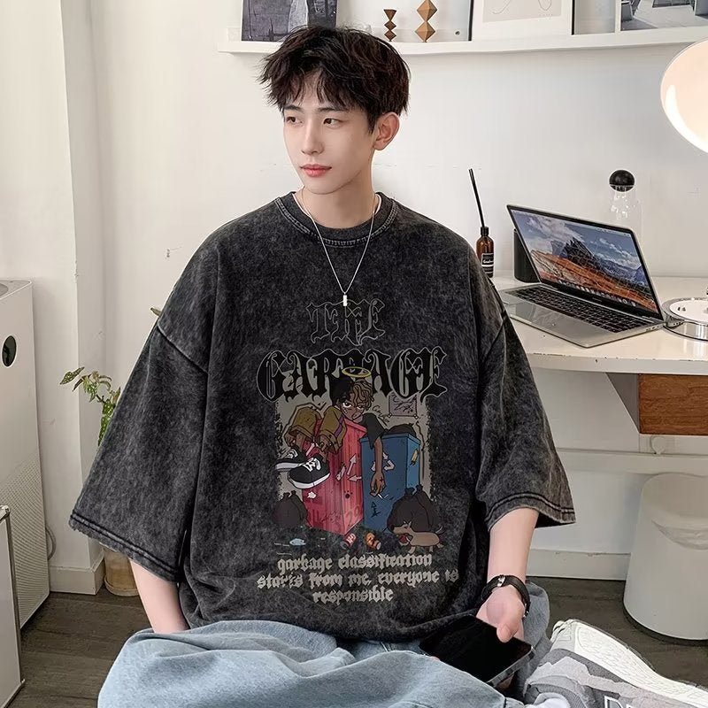 Men T Shirt Distressed Pure Cotton Heavy Retro