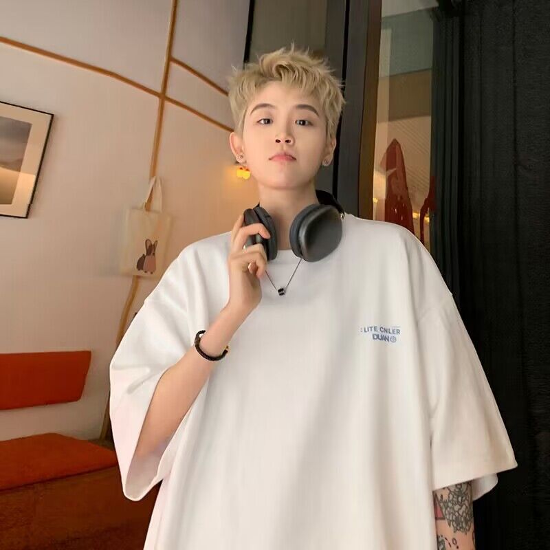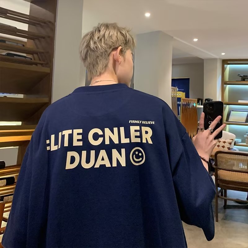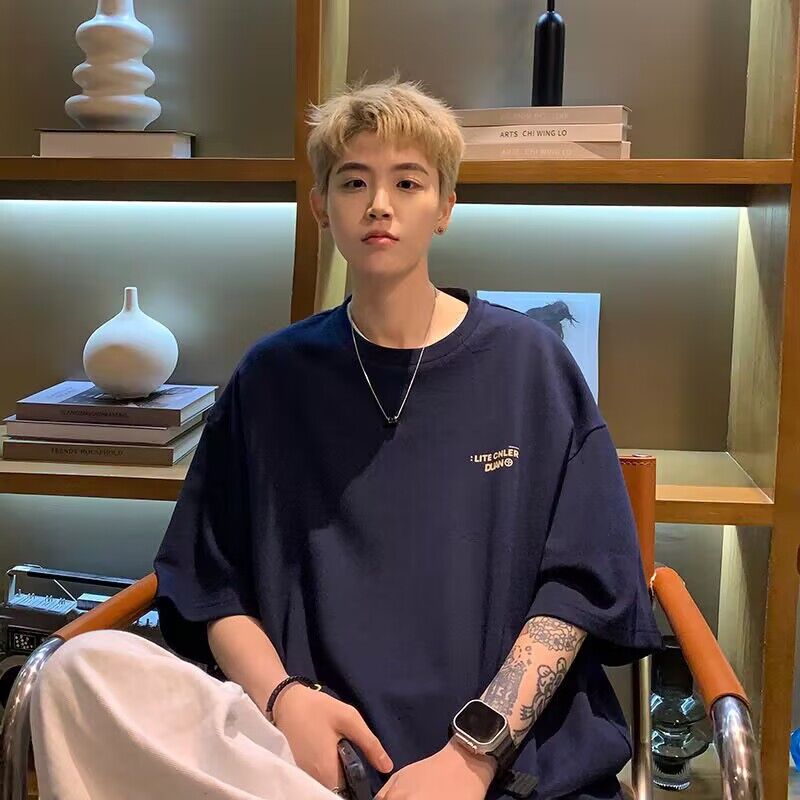 Men T Shirt Summer Retro Heavy Cotton Loose Casual