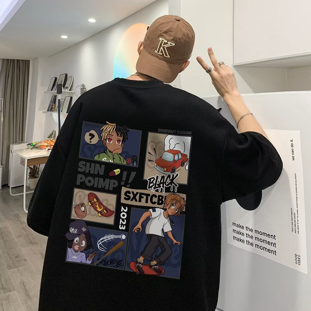 Men T Shirt Vibe Summer Vintage Cartoon Print Loose
