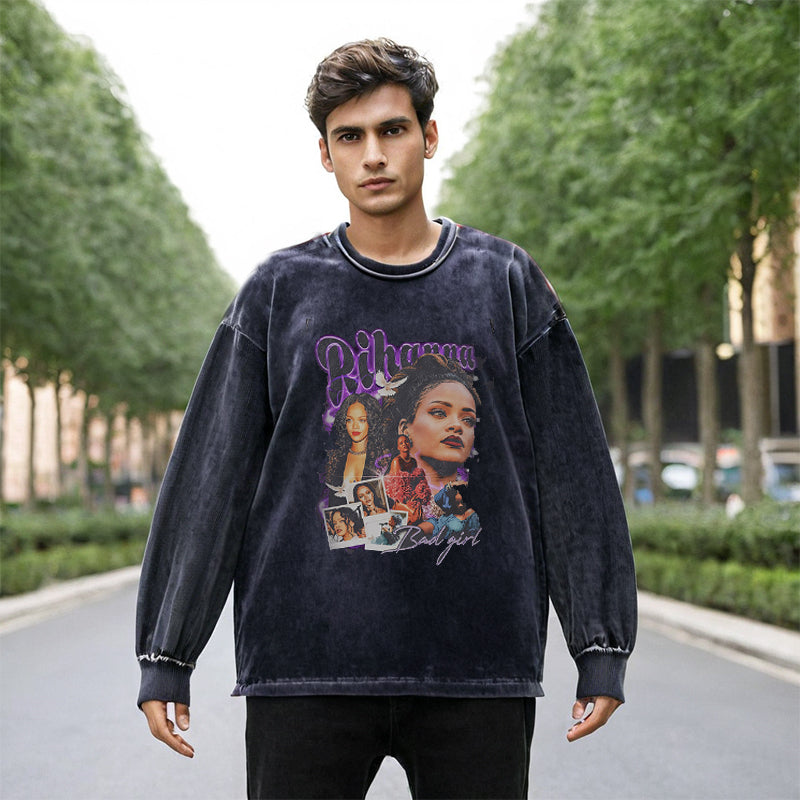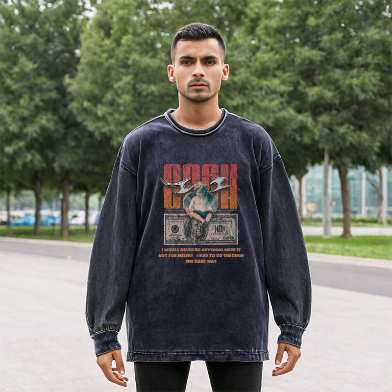 Mens Vintage Long Sleeve Shirt Autumn and Winter Trend Crew Neck Sweater Men