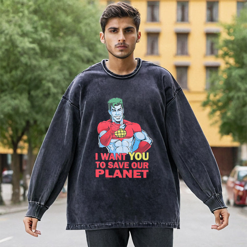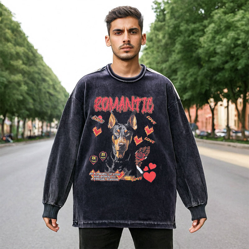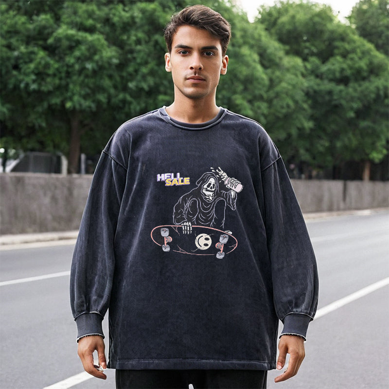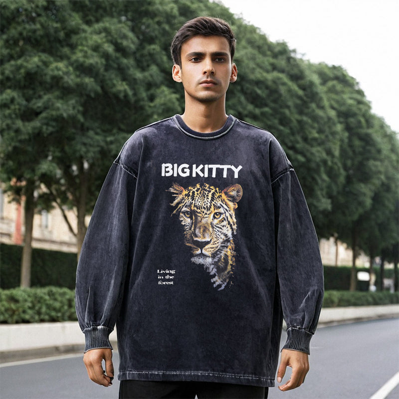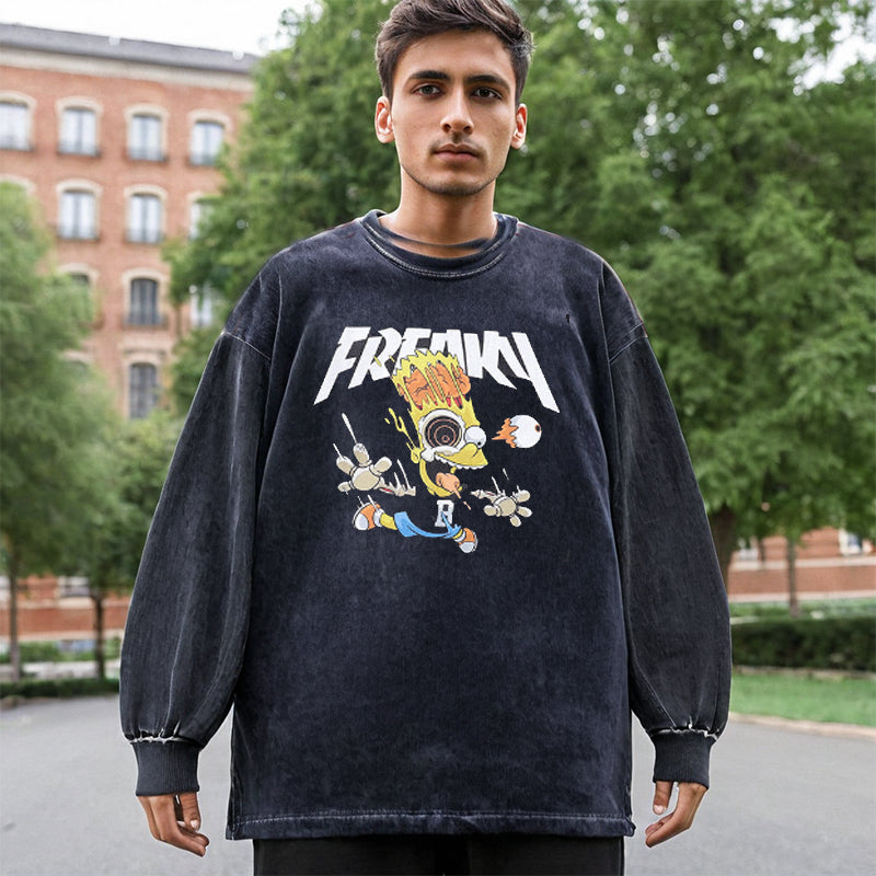 Mens Vintage Long Sleeve Shirt Autumn T-Shirt Cartoon Print Round