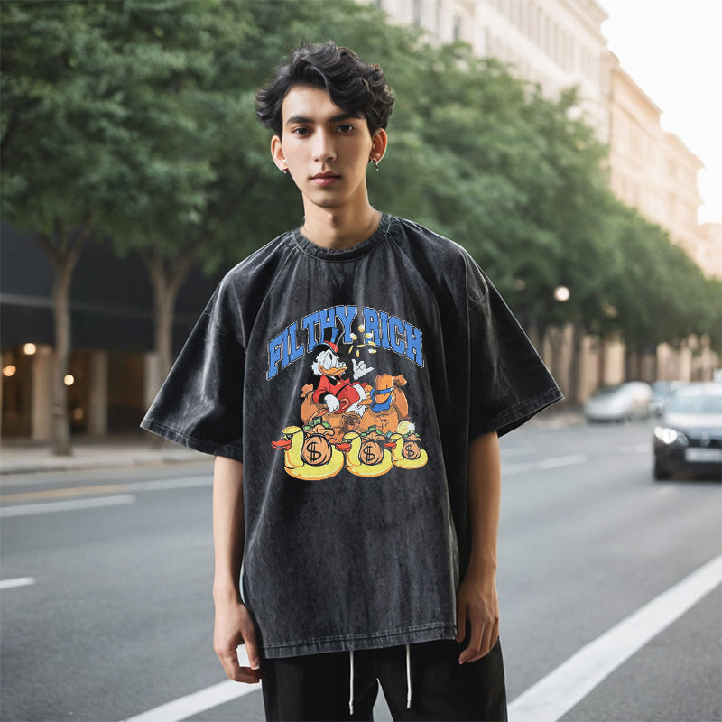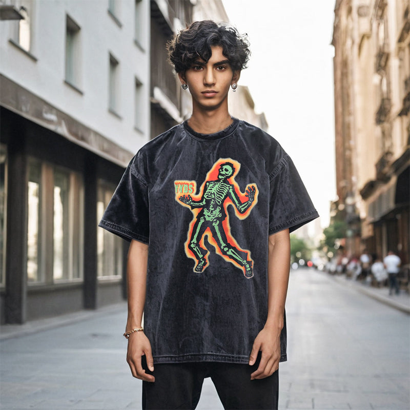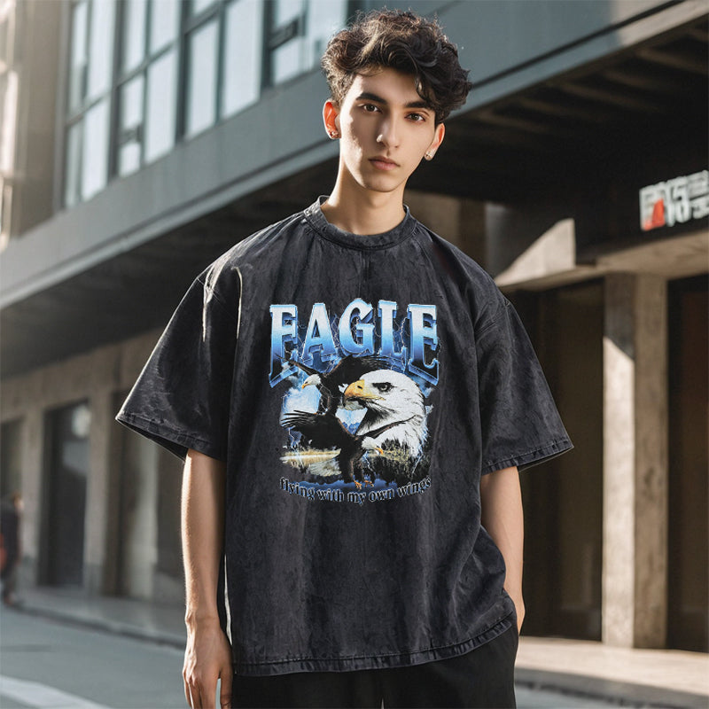 Mens Vintage T Shirt Vintage Washed Printed Short Sleeve T-Shirt