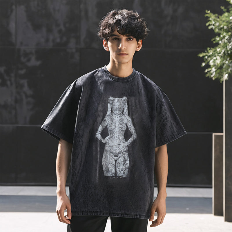 Mens Vintage T-Shirt Vintage Summer Loose