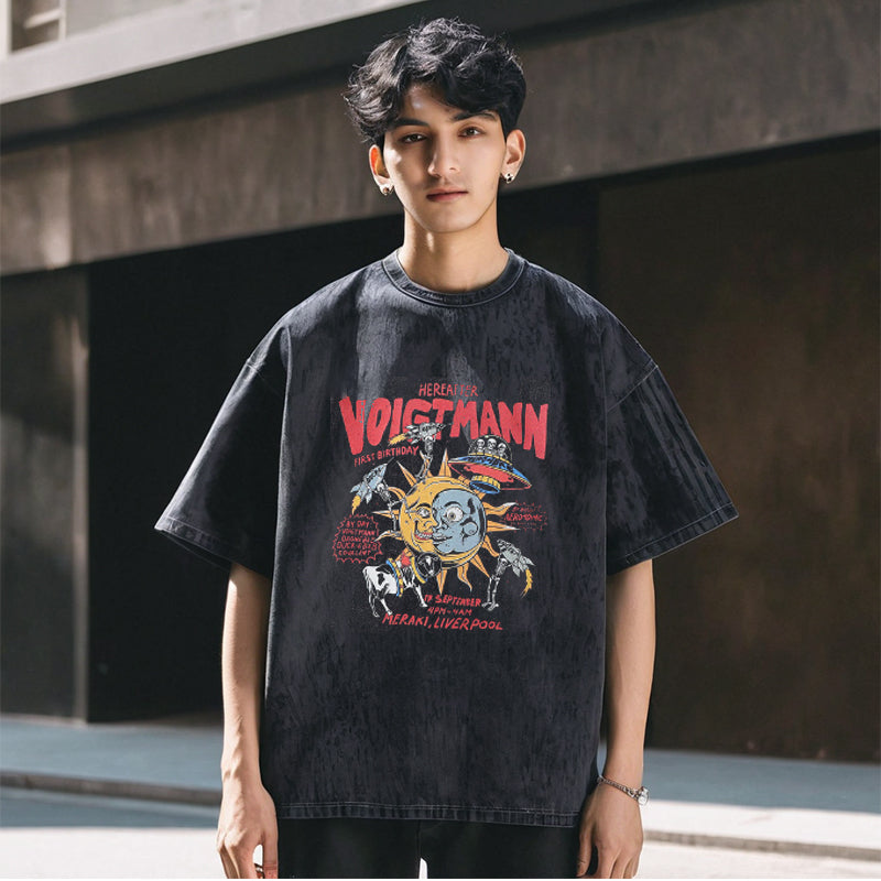 Mens Vintage T Shirt Printed Short Sleeve T-Shirt Men
