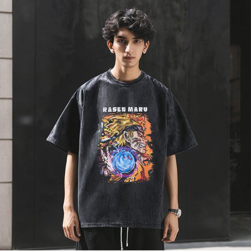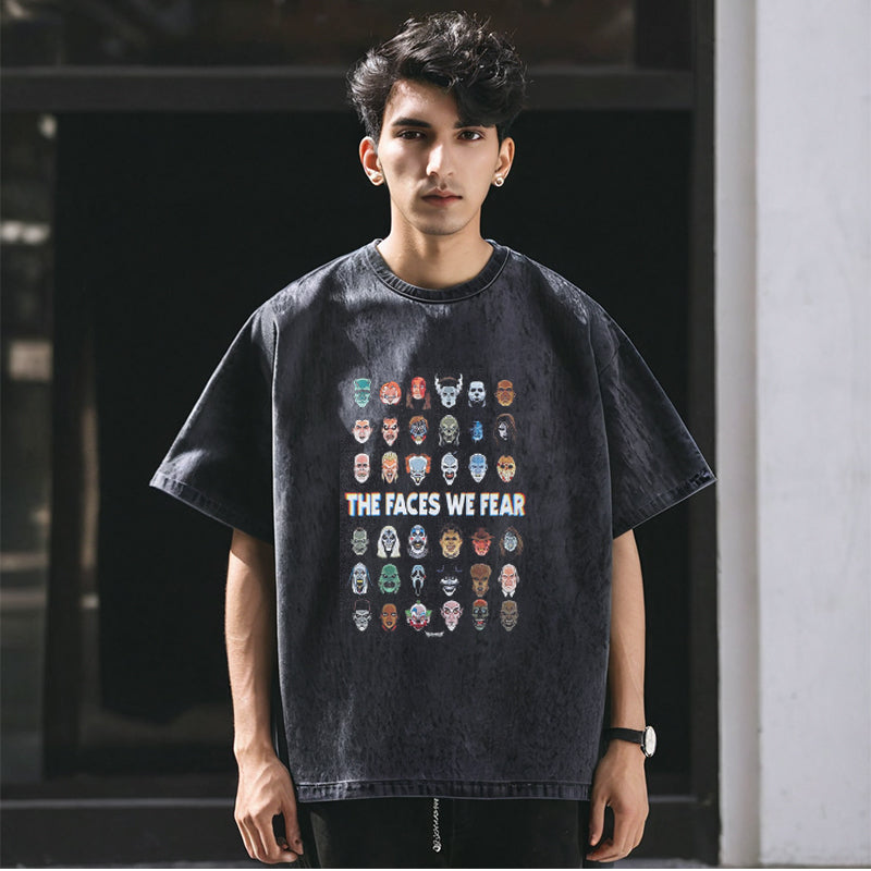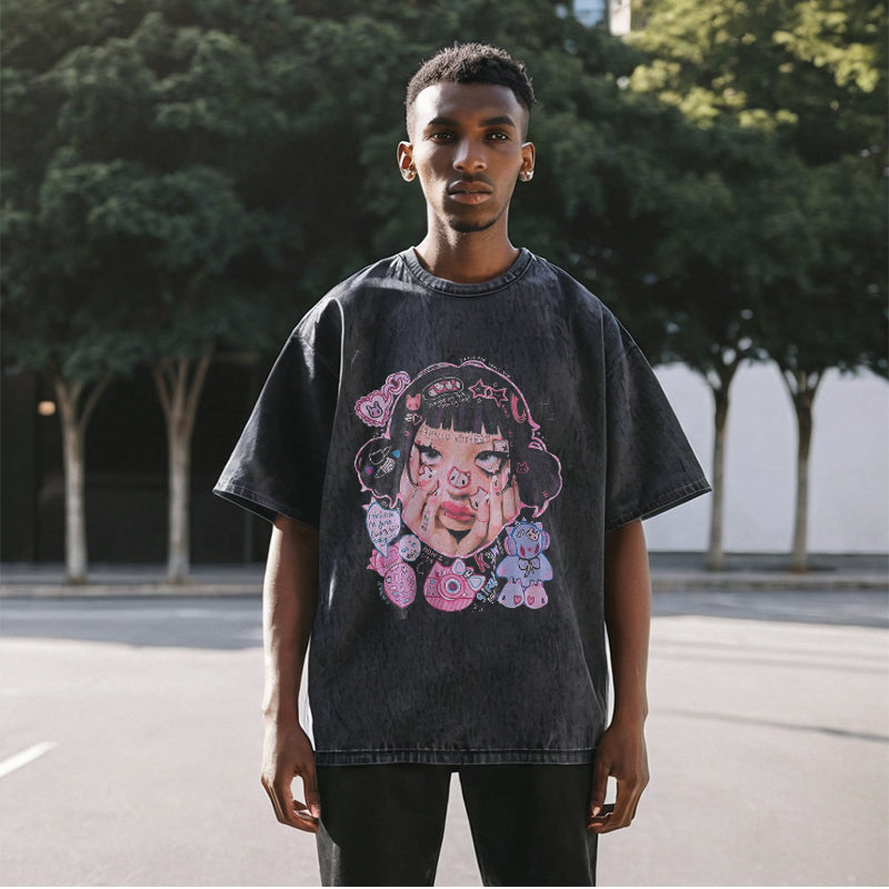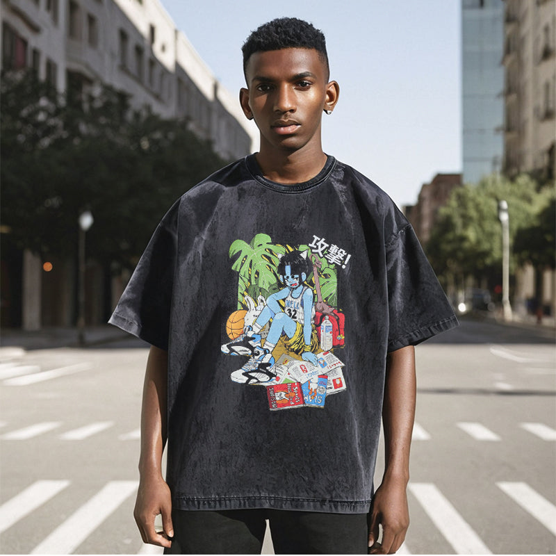 Mens Vintage T Shirt Washed Cartoon Print Short Sleeve