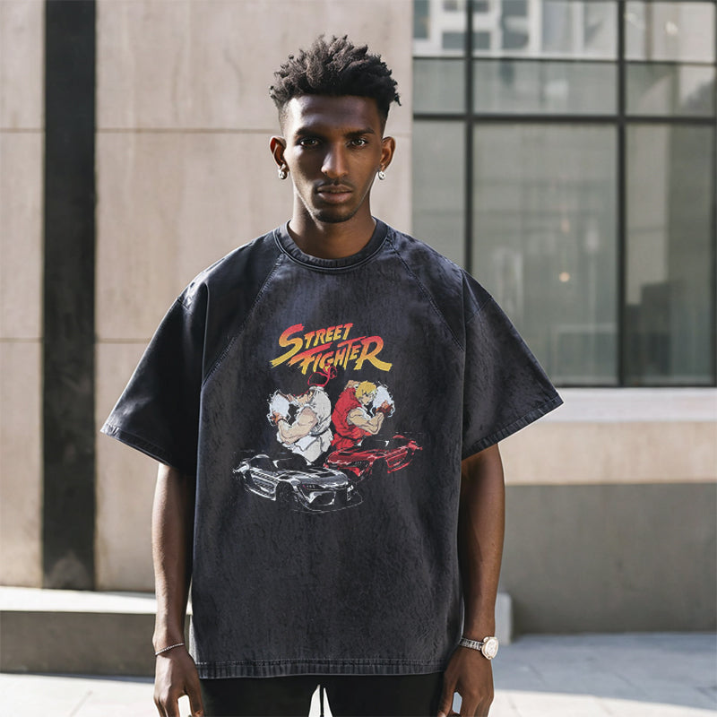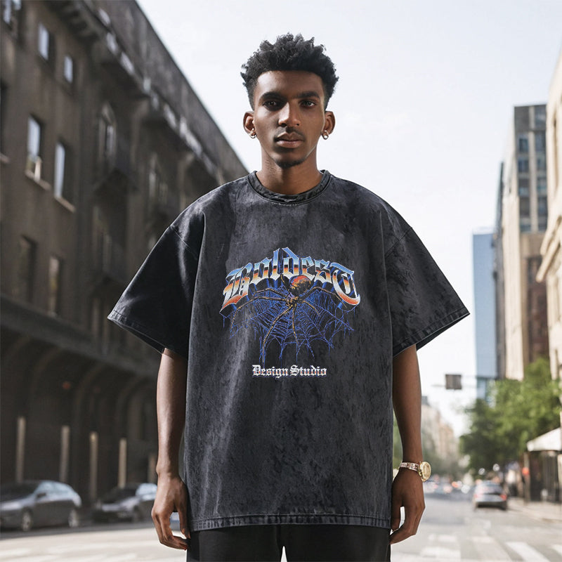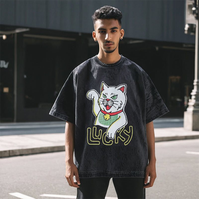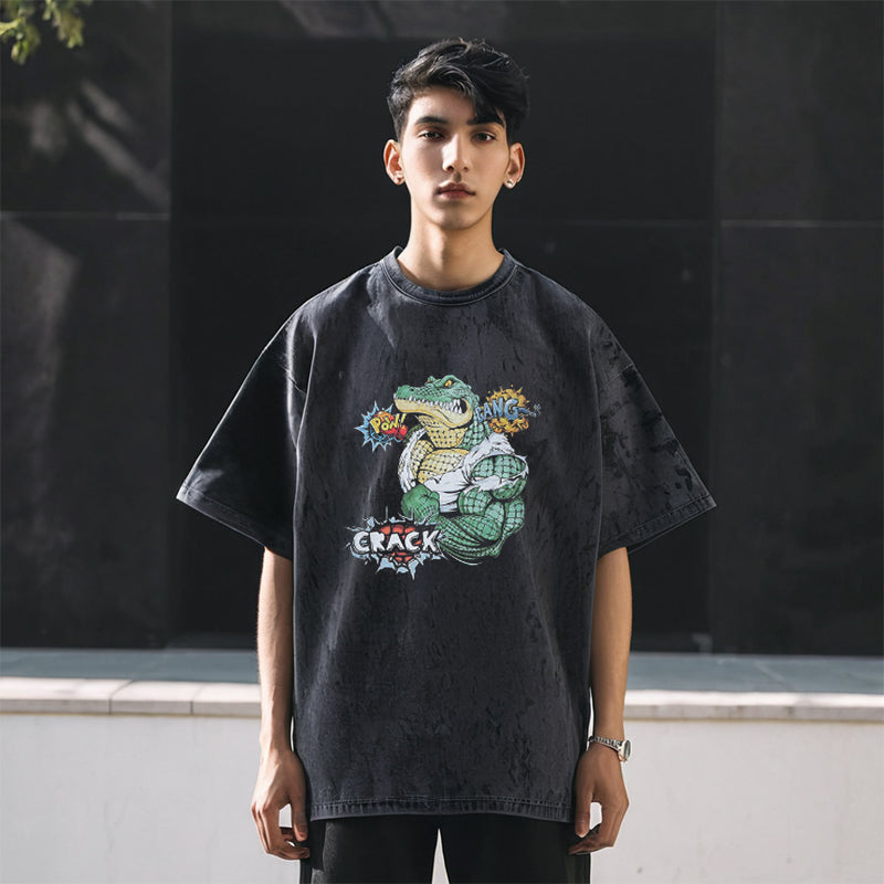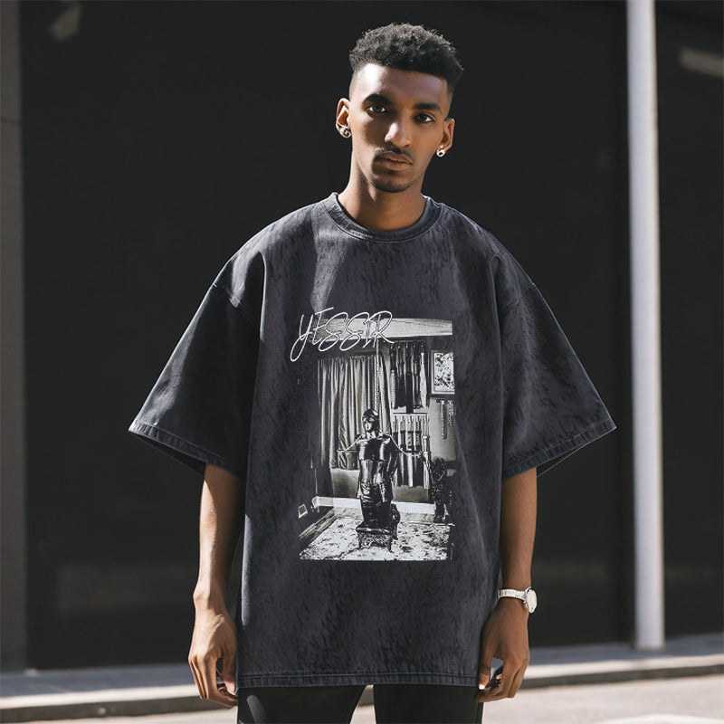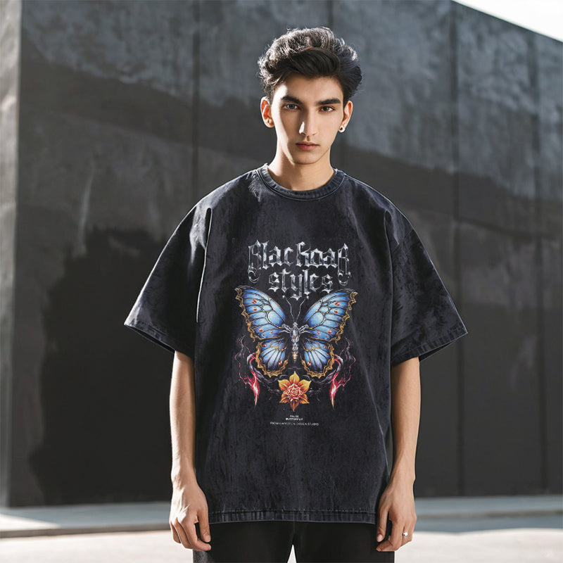 Mens Vintage T Shirt Butterfly Print Neckline Short Sleeve