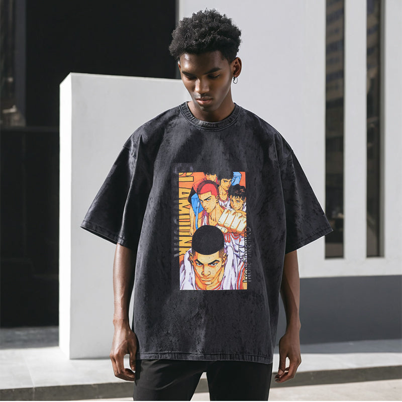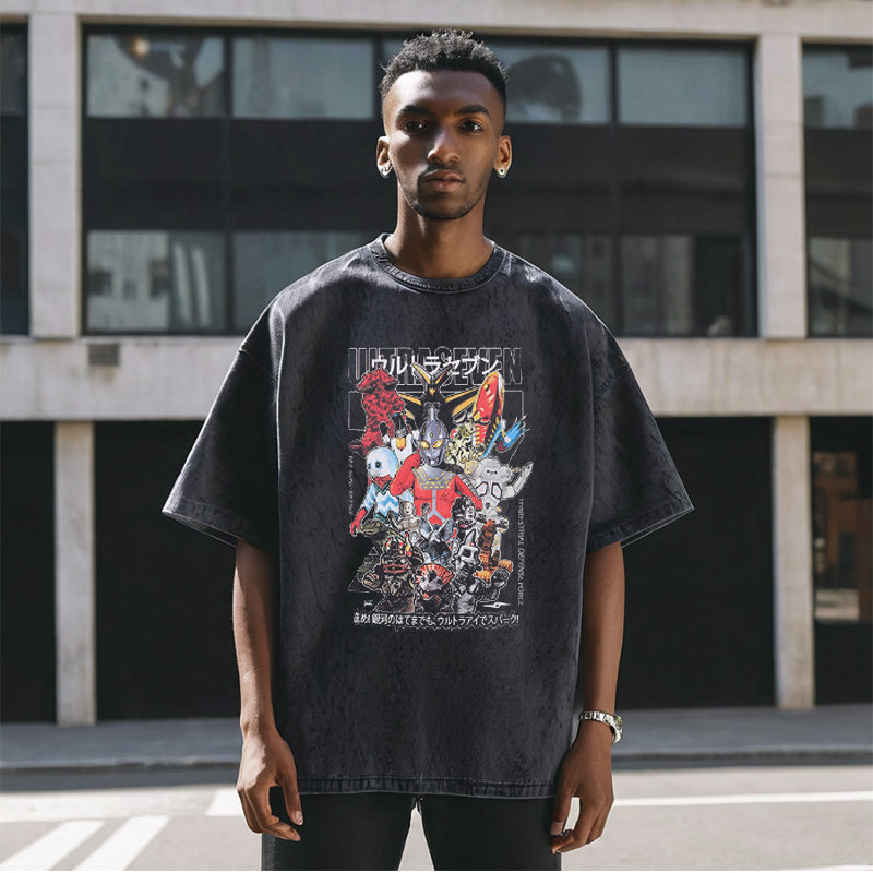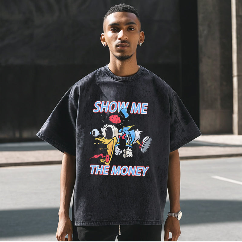 Mens Vintage T Shirt Printed Washed T-Shirt Men