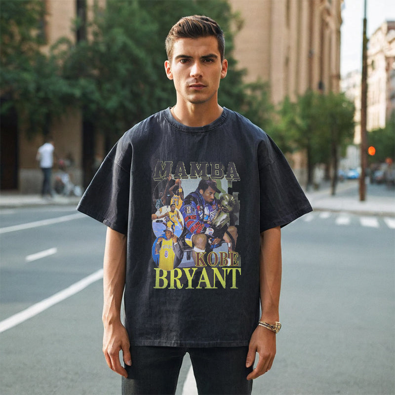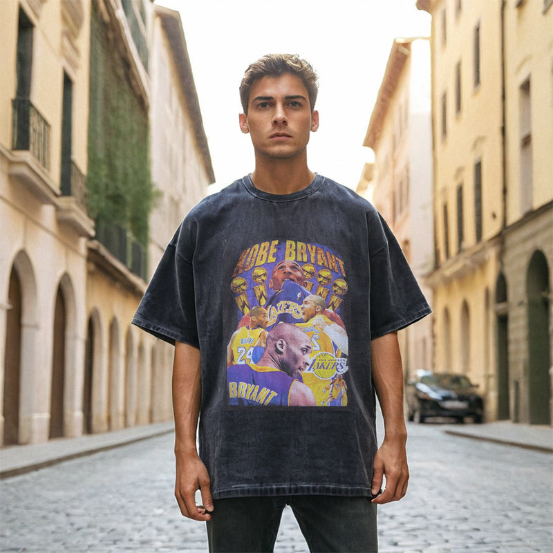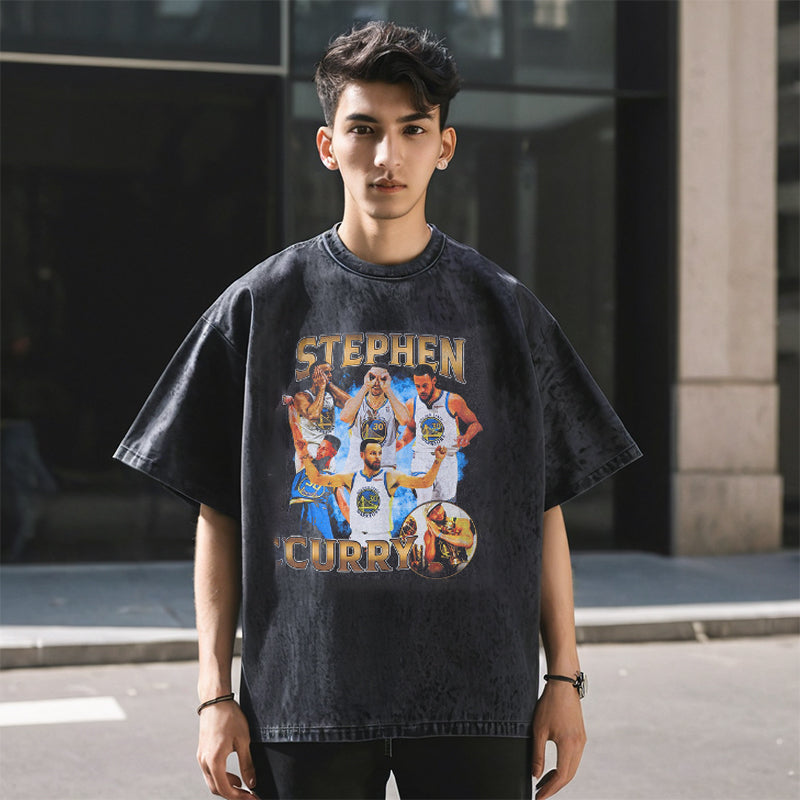 Mens Vintage T Shirt Printed Washing Water Short Sleeve T-Shirt