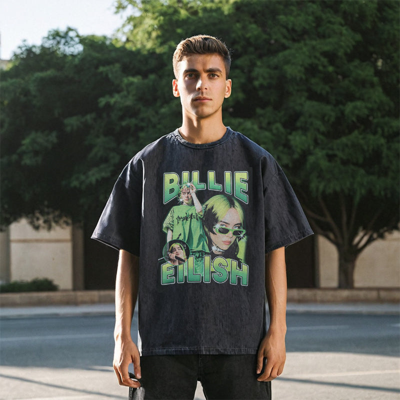 Mens Vintage T-Shirt Singer Print Short Sleeve T-Shirt