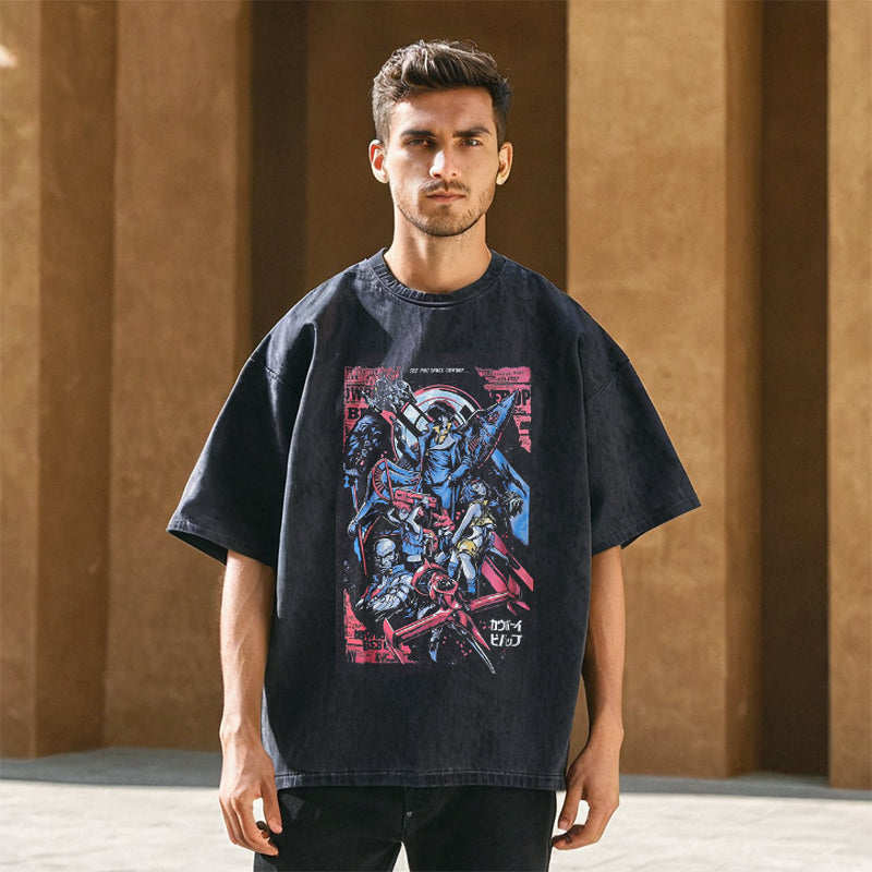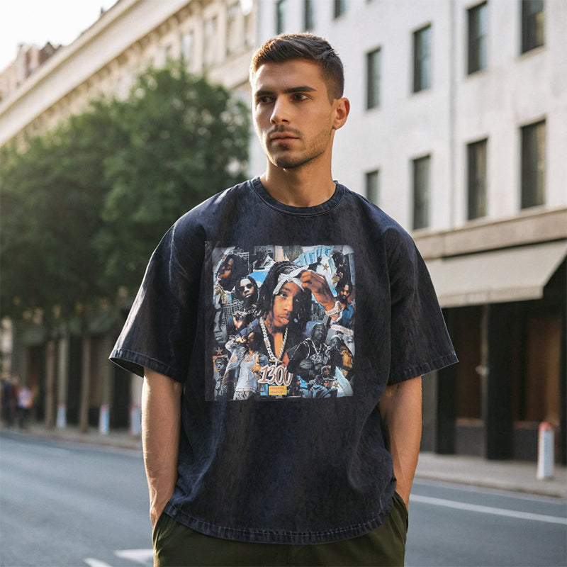 Mens Vintage T Shirt Printed Washed Old Short Sleeves