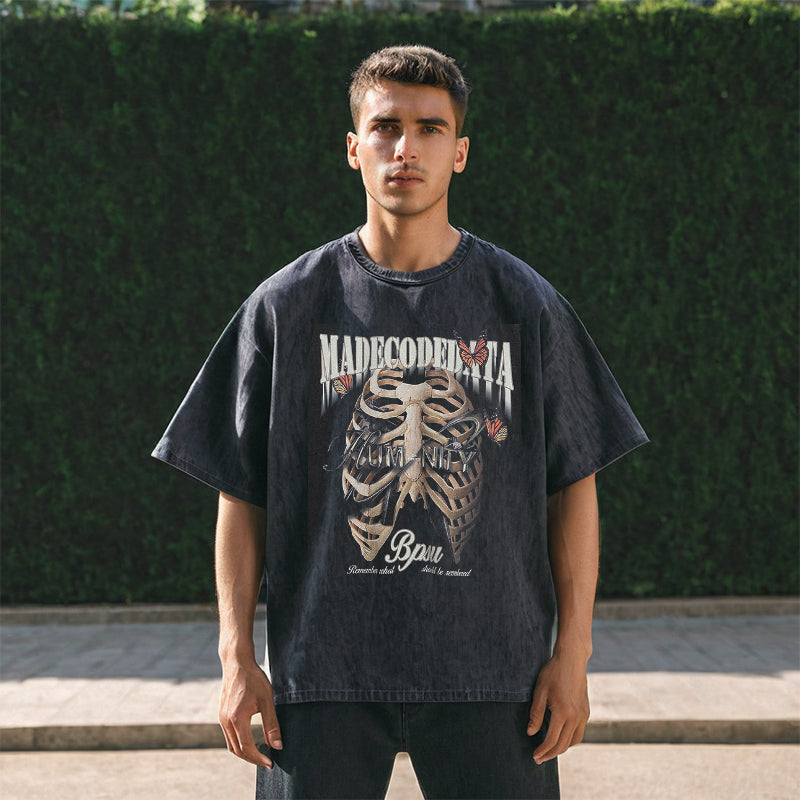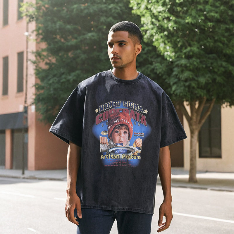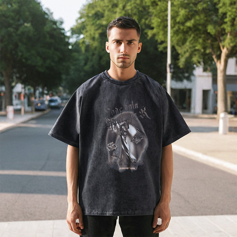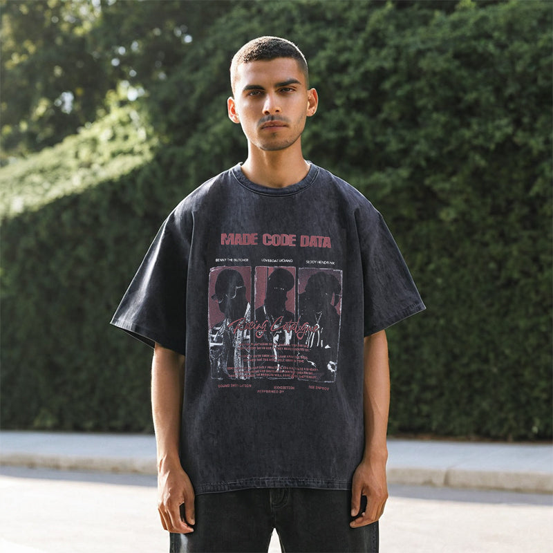 Mens Vintage T Shirt Printed Washed Old Short Sleeves