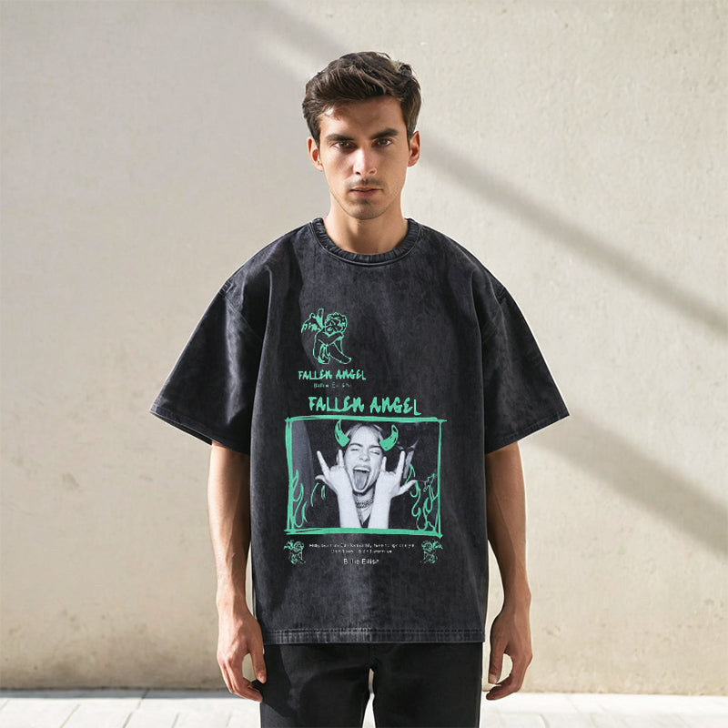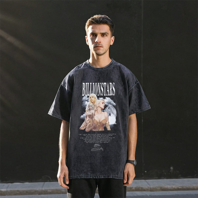 Mens Vintage T-Shirt Washed Short Sleeve T-Shirt