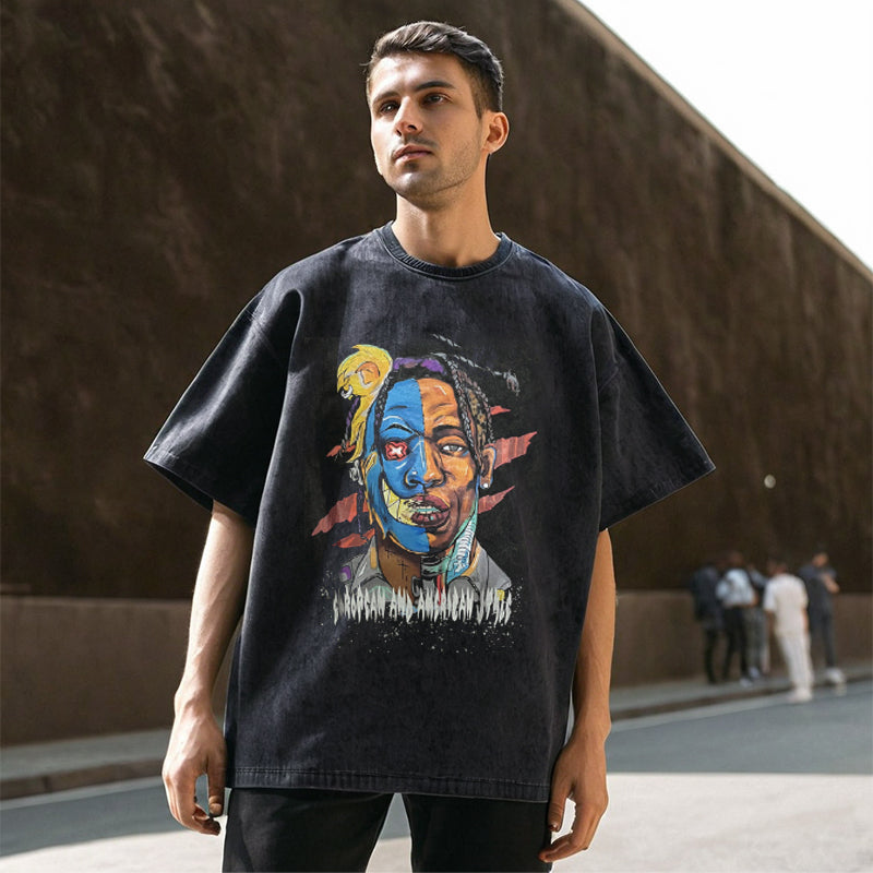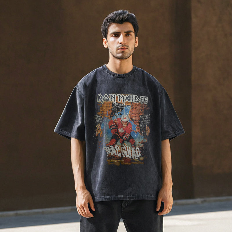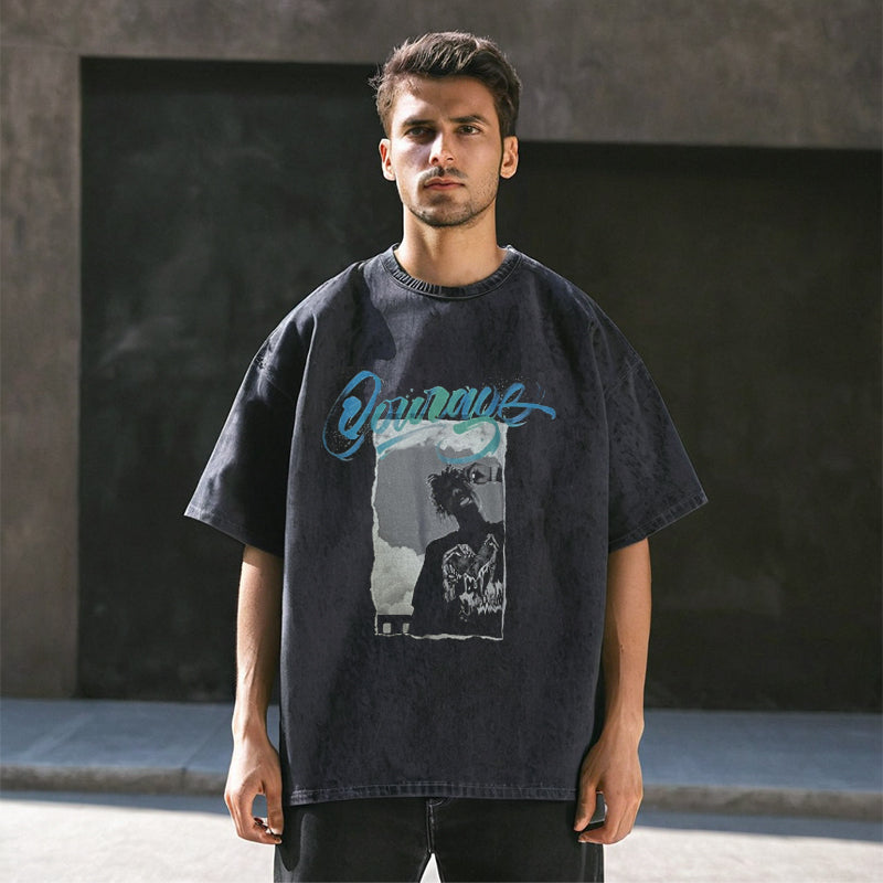Mens Vintage T Shirt Washing Water Short Sleeve T-Shirt Men