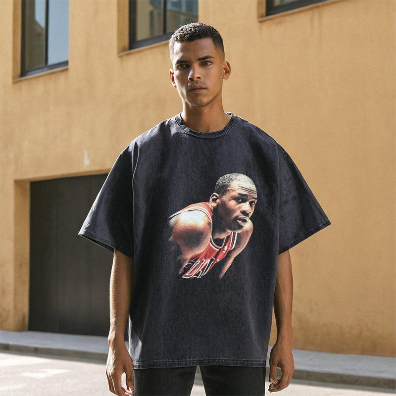 Mens Vintage T Shirt Printed Loose Short Sleeve Men