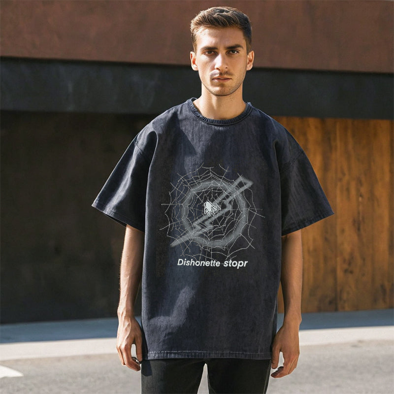 Mens Vintage T Shirt Black Spider Short Sleeve T-Shirt Men