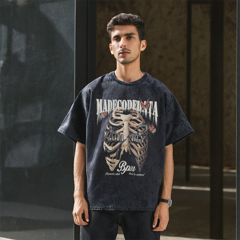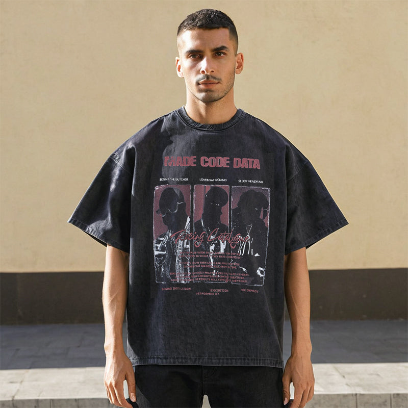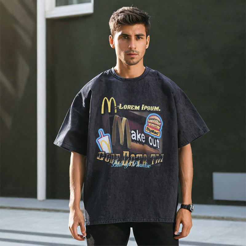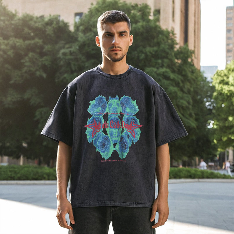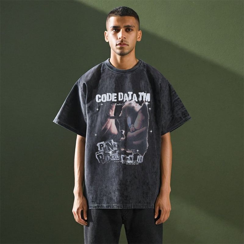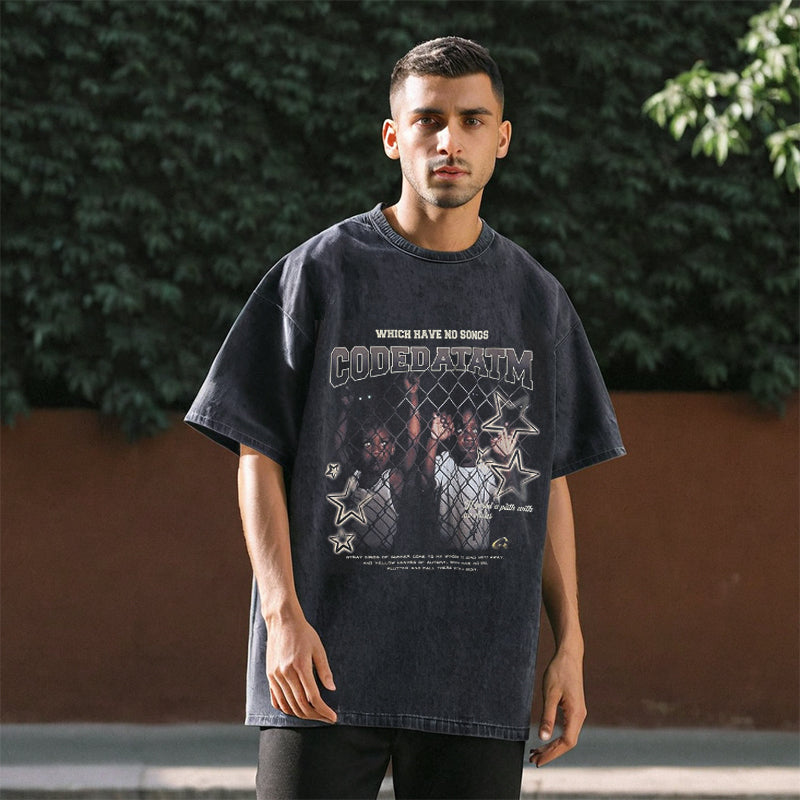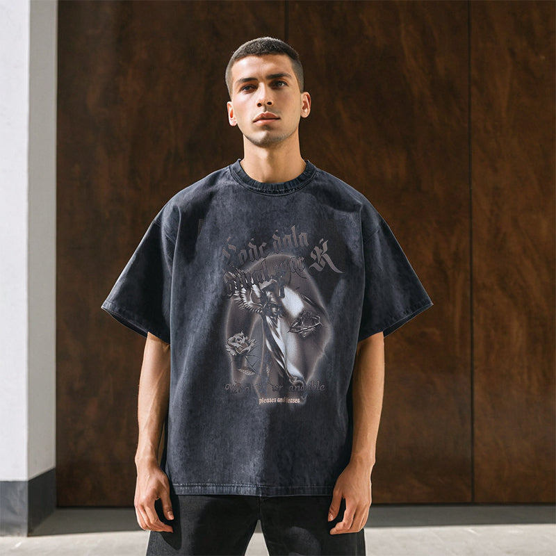 Mens Vintage T Shirt Printed Washed Old Short Sleeves