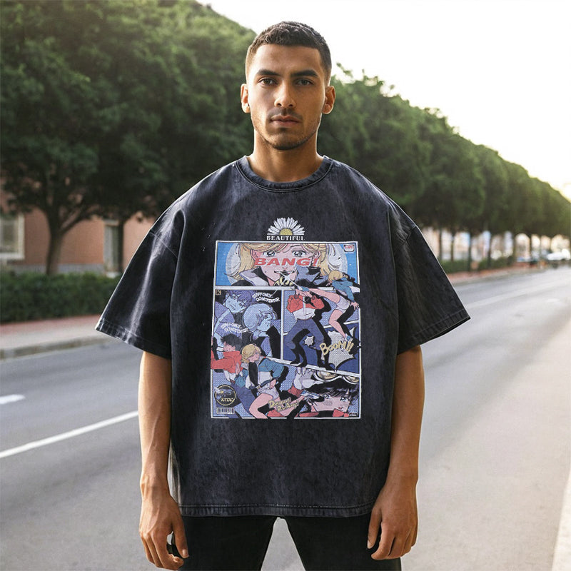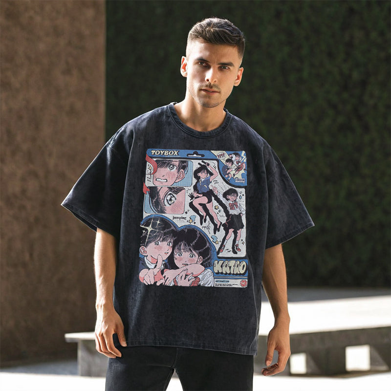 Men's Vintage T Shirt Short Sleeve T-Shirt Men's Cartoon Print