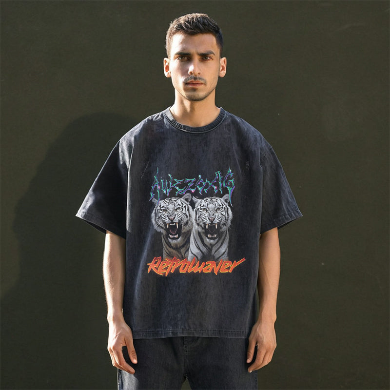 Mens Vintage T Shirt Short Sleeve T-Shirt Men's and Women's Wash