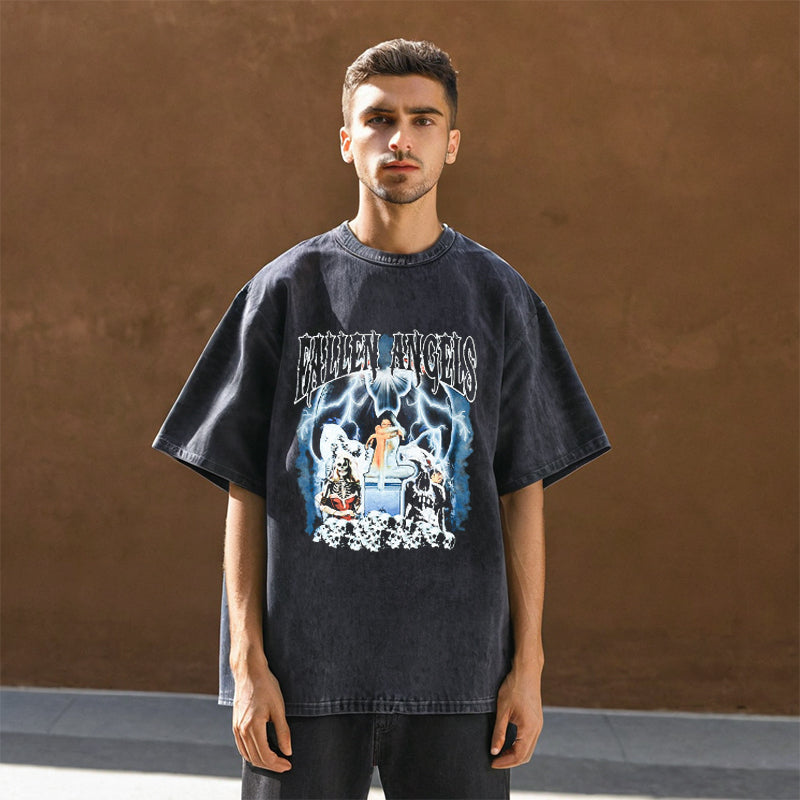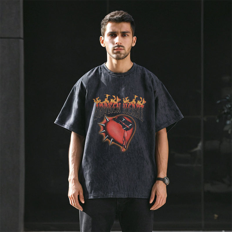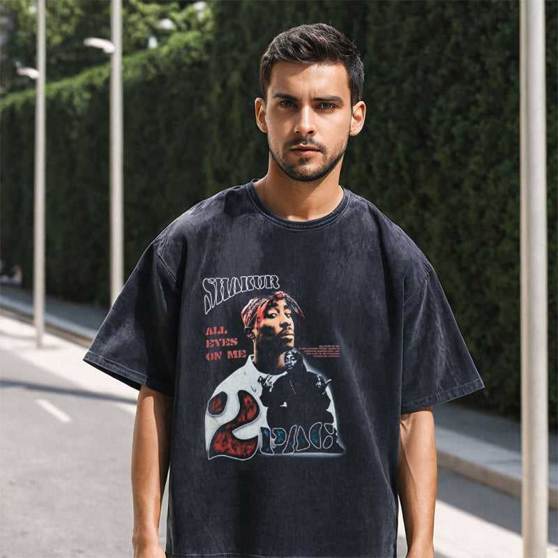 Mens Vintage T-Shirt Printed Loose T-Shirt