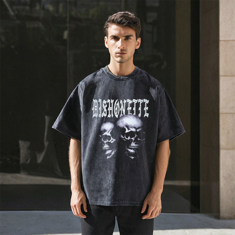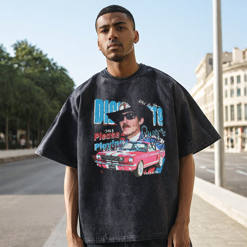 Mens Vintage T Shirt Printed Washed Old Short Sleeves