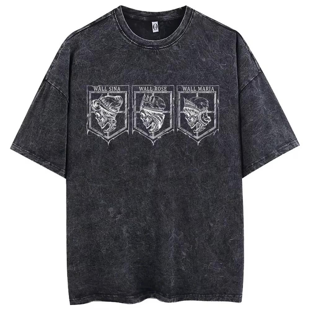 Washed Anime Attack on Titan T-Shirt Hip Hop Streetwear
