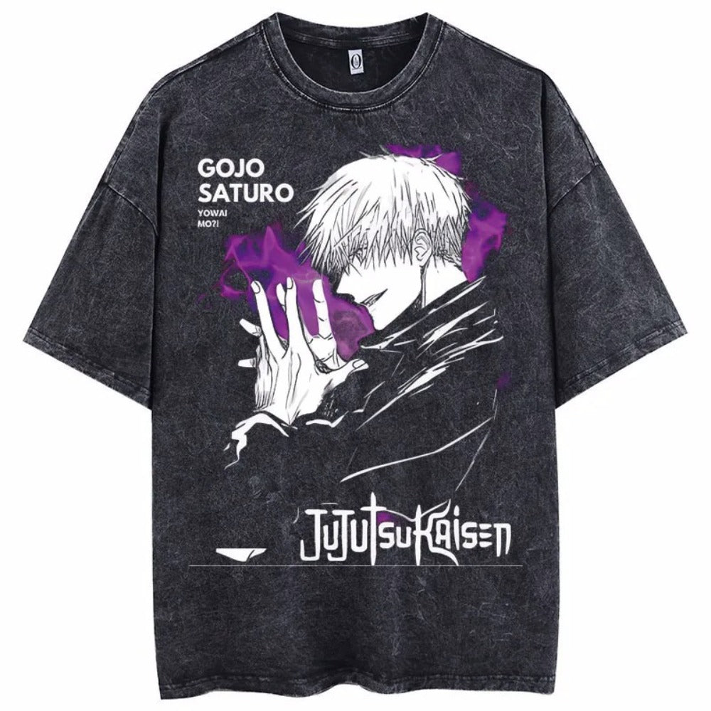 Vintage oversized acid-washed T-shirt Printed Street Harajuk