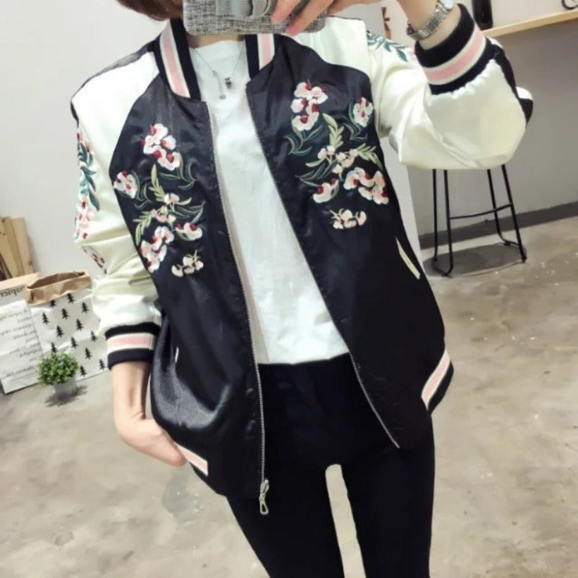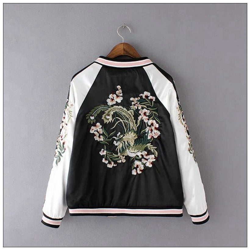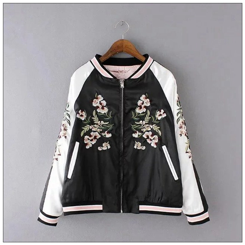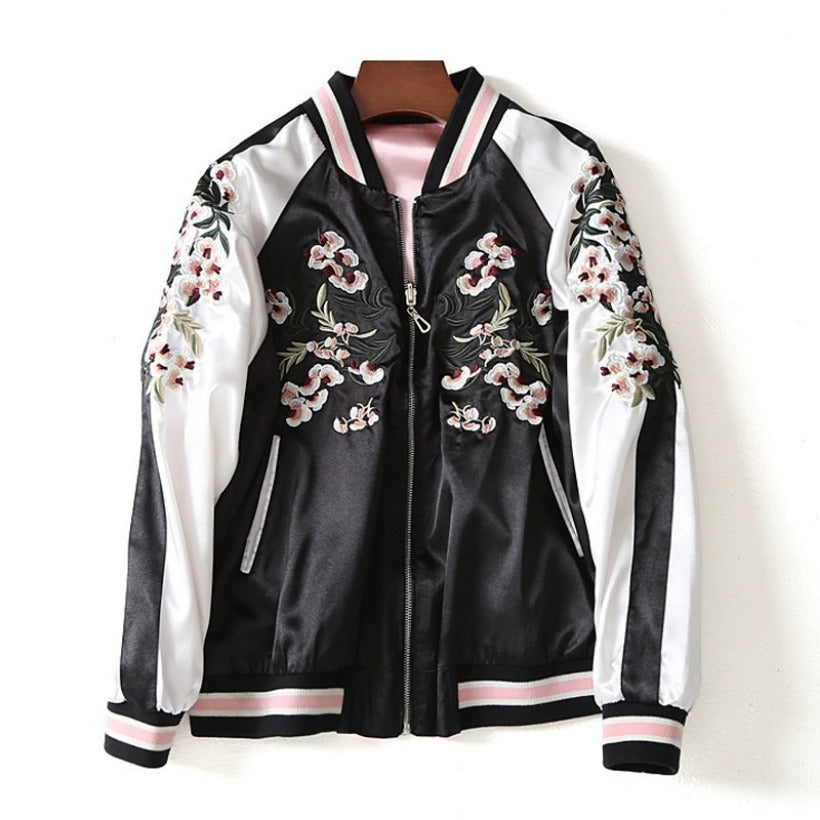 Women Cotton Coat Sakura Embroidered Baseball Uniform