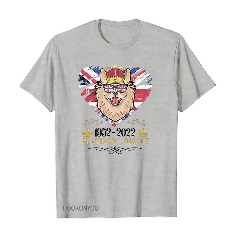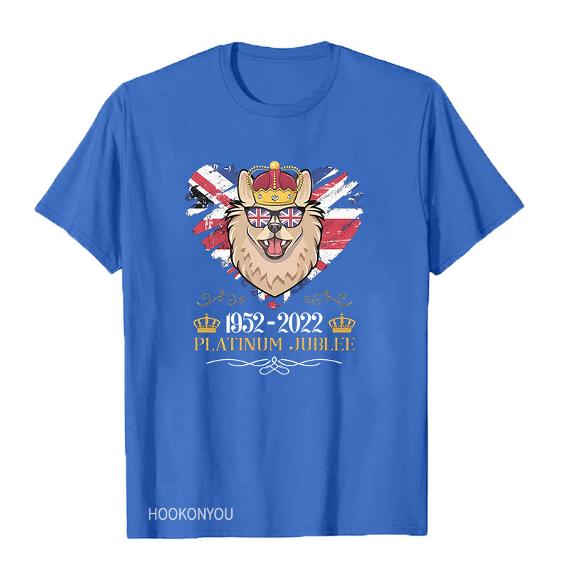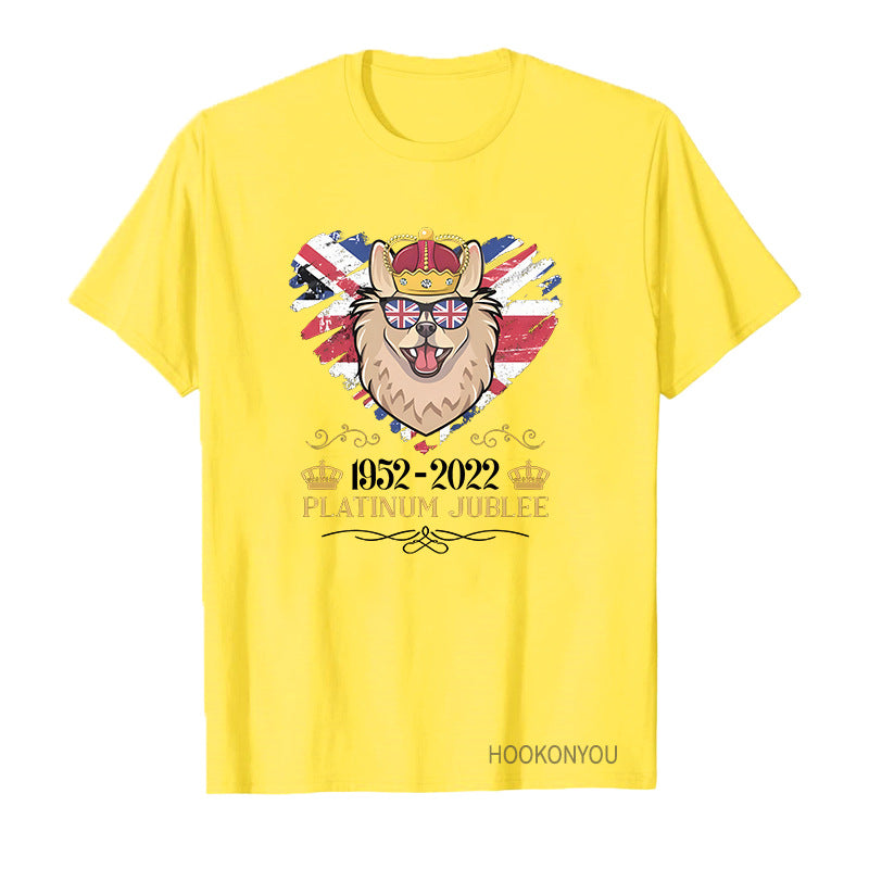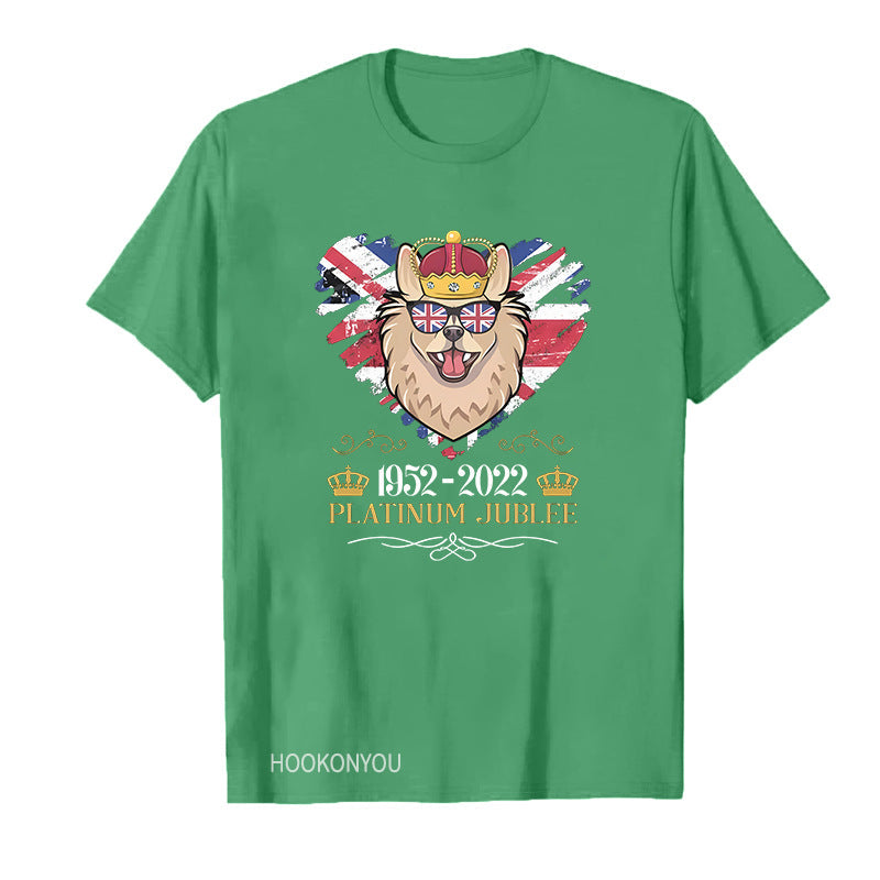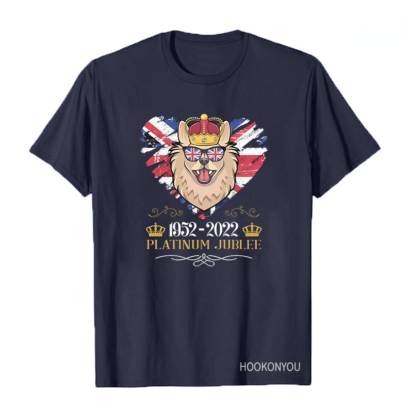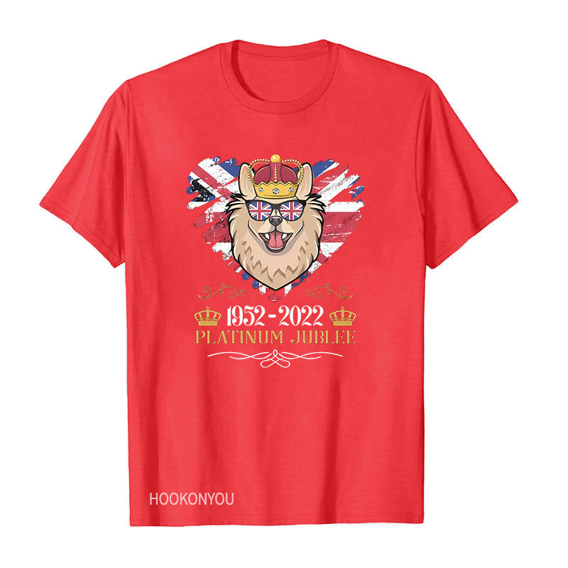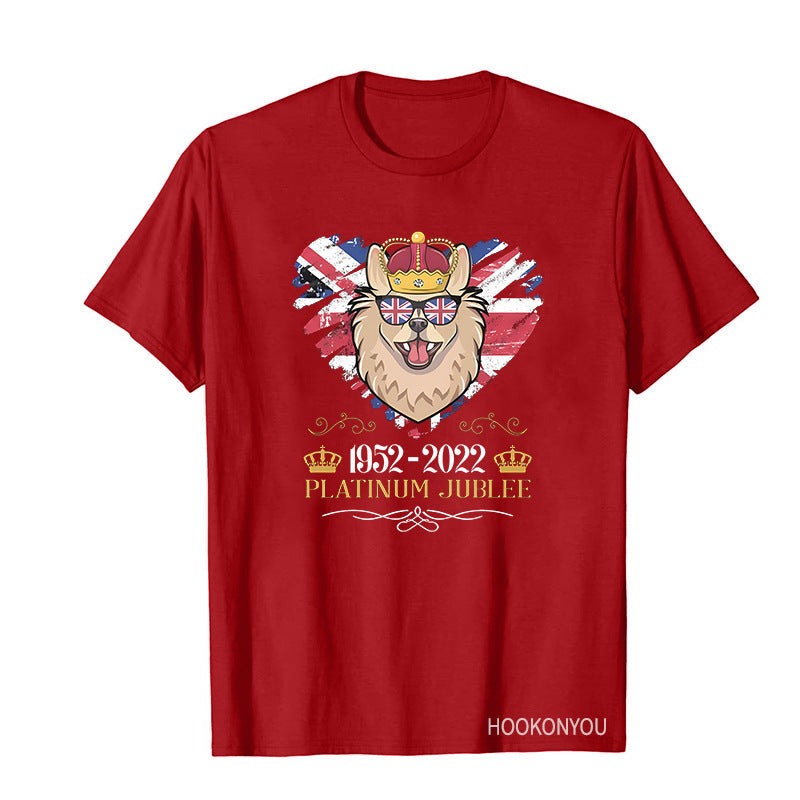 Red by Queen's Platinum Jubilee 2022 Elizabeth 70 Years T-shirt Puppy Printed round Neck