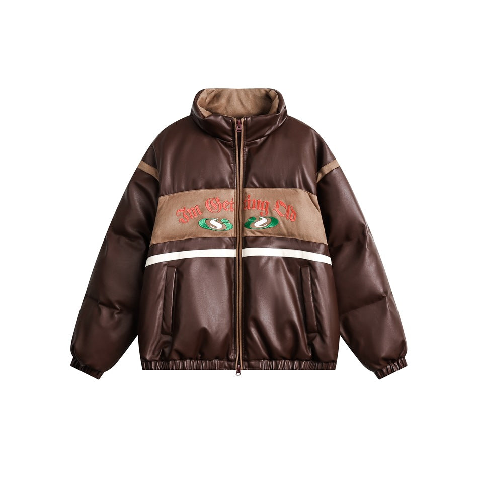 Unisex Coat PU Leather Jacket Winter Thickening Stand Collar