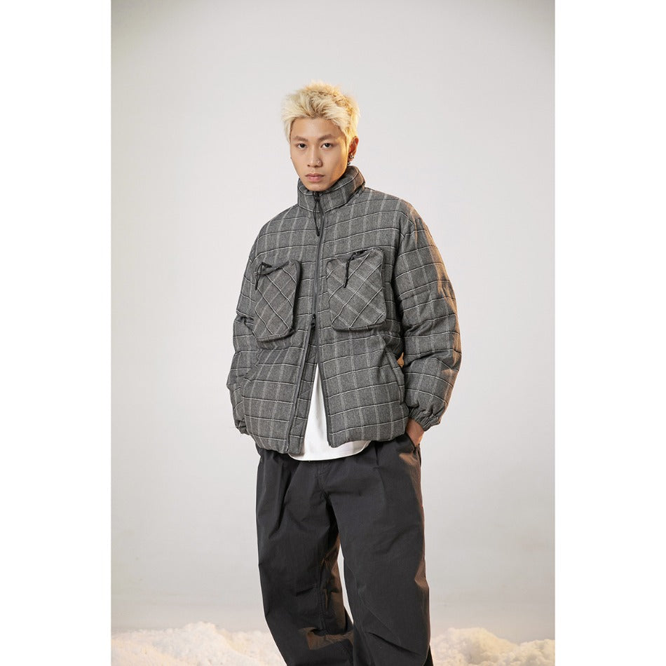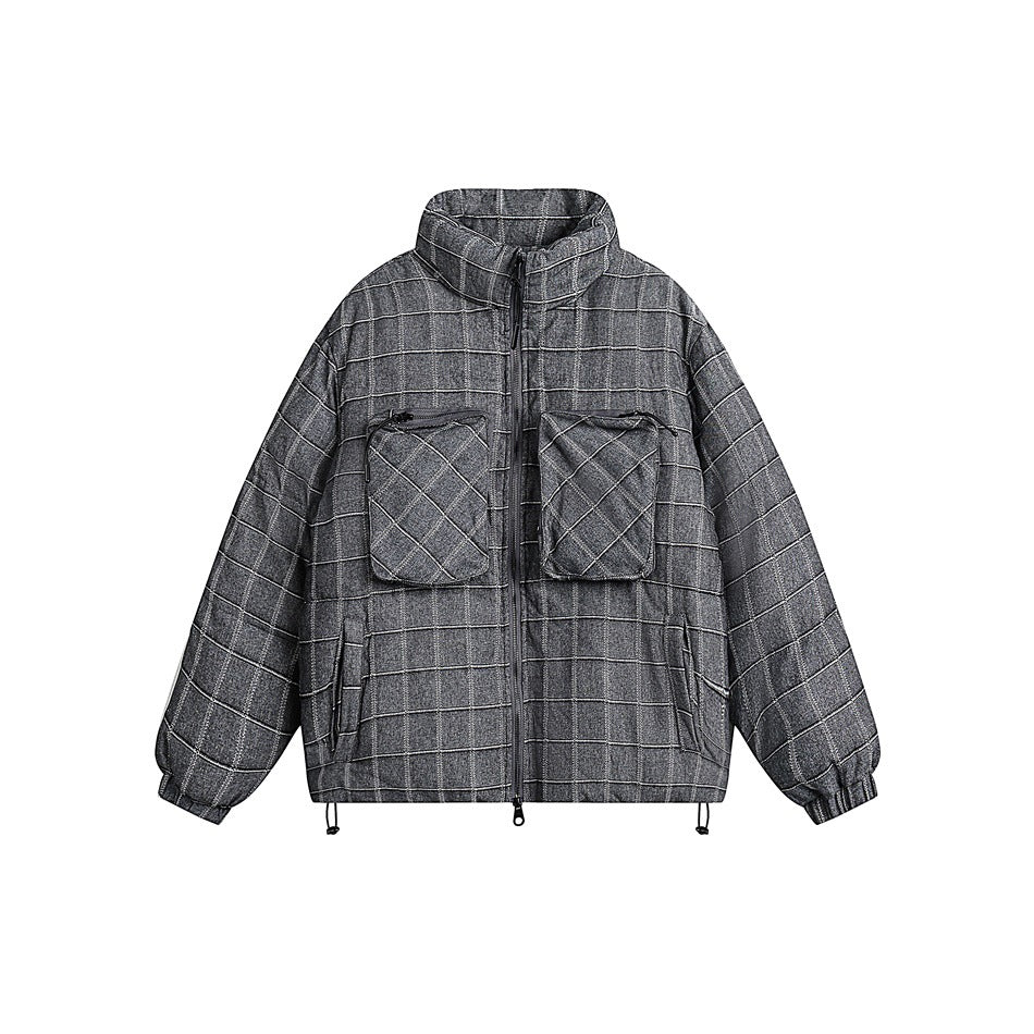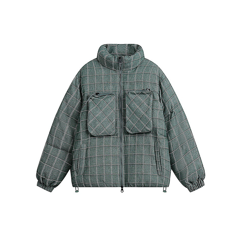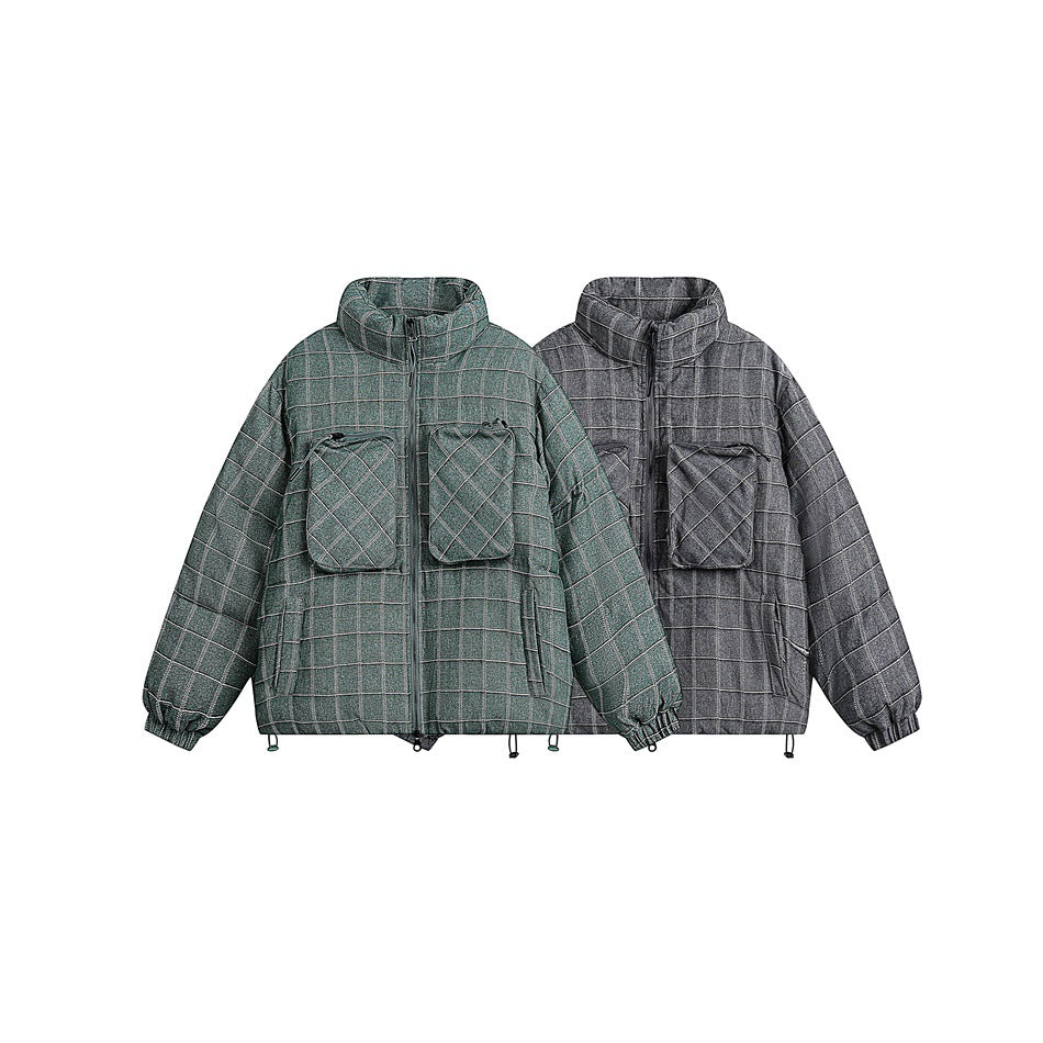 Unisex Coat Winter Stand Collar Plaid Coat Cotton Coat
