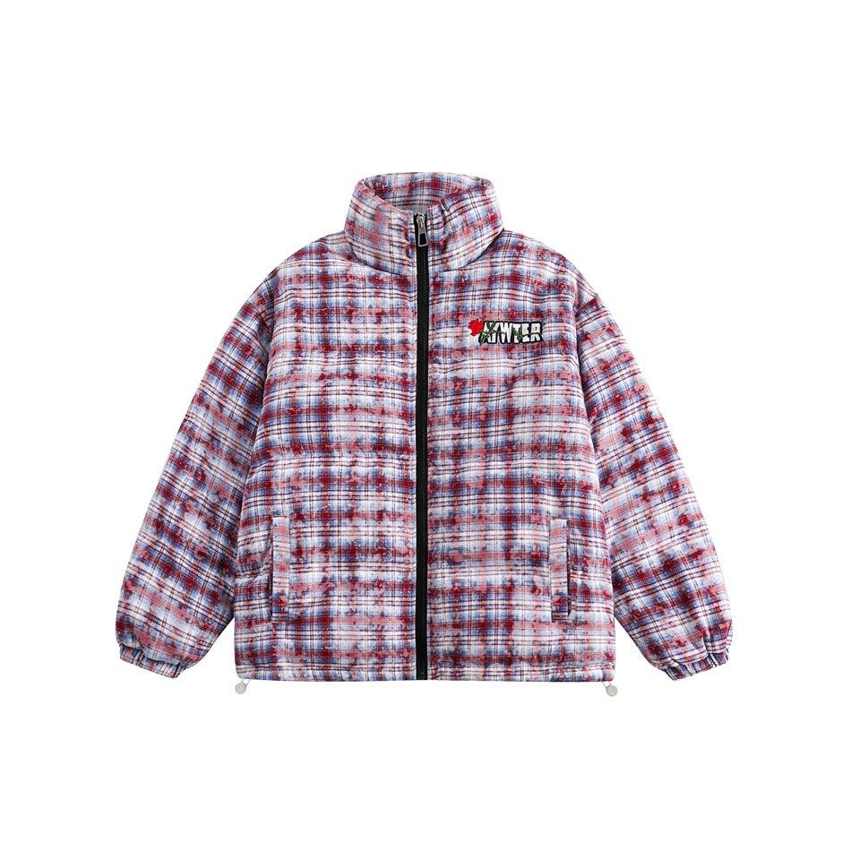 Unisex Coat Vintage Plaid Stand-up Collar Thermal Coat Loose