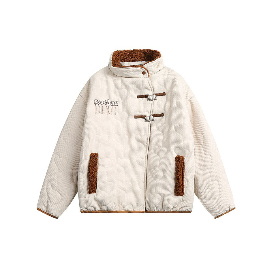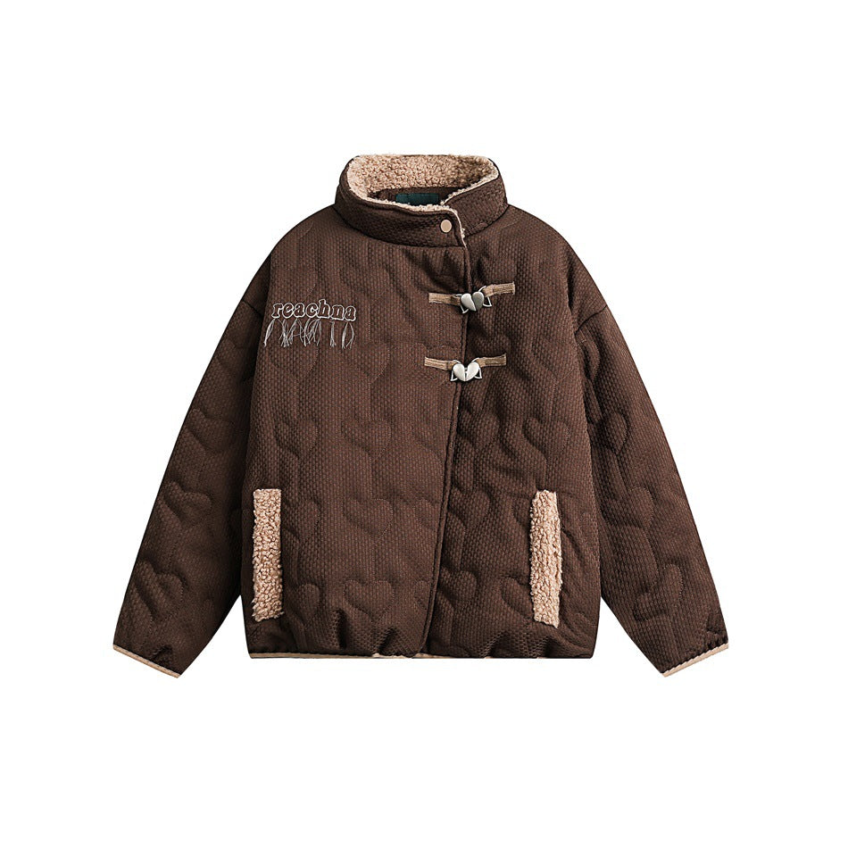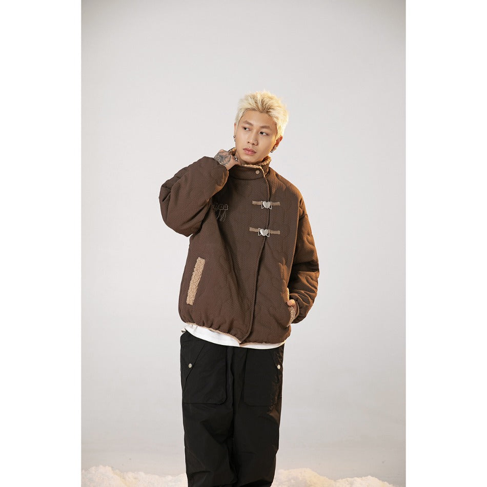 Unisex Coat Stand-up Collar Thermal Coat Loose Cotton Coat