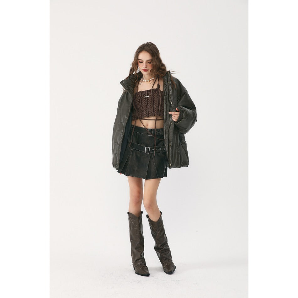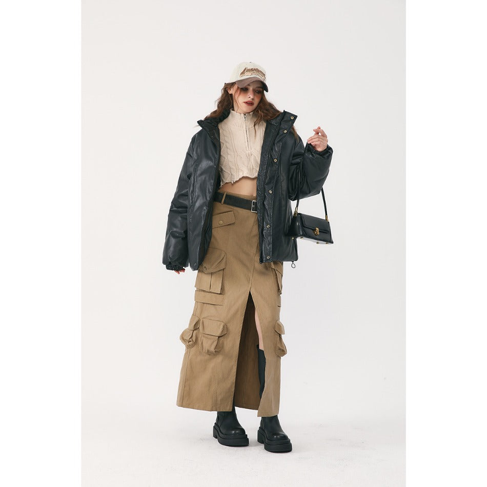 Unisex Coat PU Leather Cotton-Padded Jacket Loose
